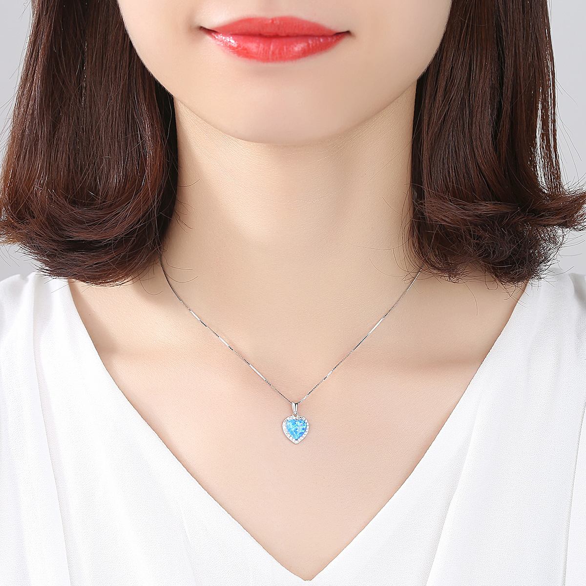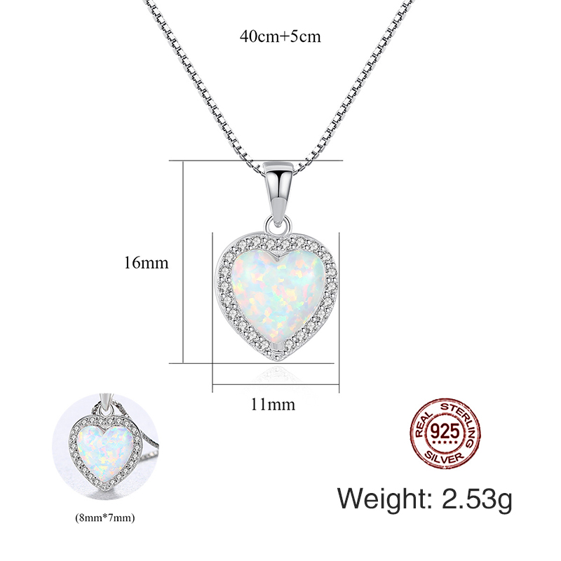 - Product Name: 100% Sterling Silver Heart Opal Pendant Necklace Jewelry Gift Necklace