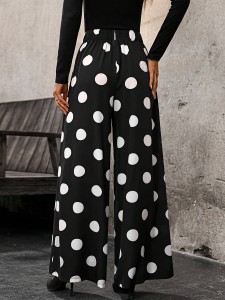 Home>Women's Bottoms>Pants>1pc Women'S Polka Dot Print Casual Wide Leg Pants, Polyester Fabric, Long Length, Suitable for Spring\u002FSummer\u002FAutumn, Fashionable Vacation Style, Adult - Black and White