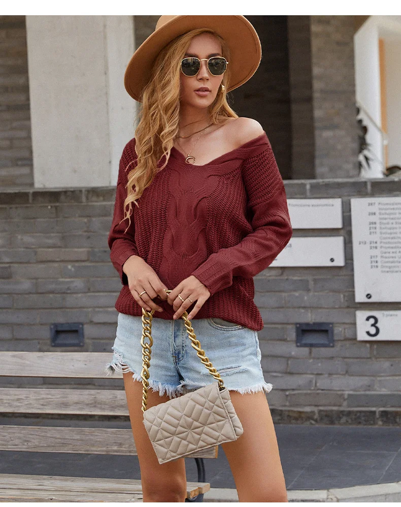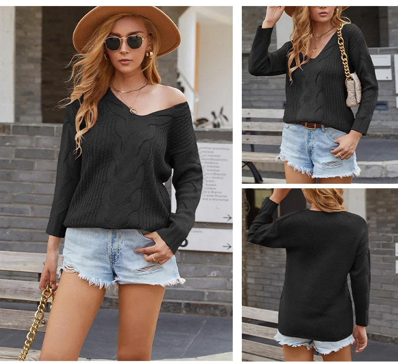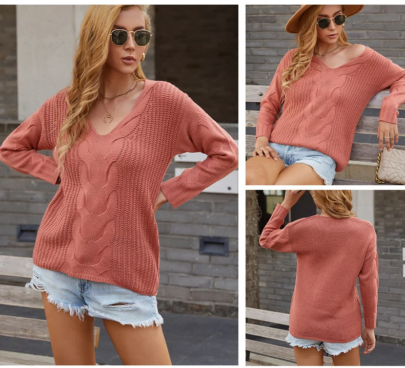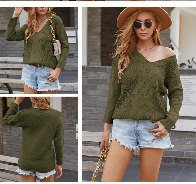 - Product Name: 2021 Warm Sweater Female Pullovers Women V Neck Sweaters Knitted Jumpers Fashion Solid Color Twist Pullover Lady Tops Autumn