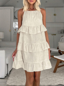 - Tag: Mini Dress , Mini Dresses , summer , loose , sexy , Spring , Vacation , casual , khaki , 70%Cotton , sleeveless , Solid Color , Zipper , 1 , A-line , Tied , Spaghetti-Neck , 30% Linen , Ruffle Trim