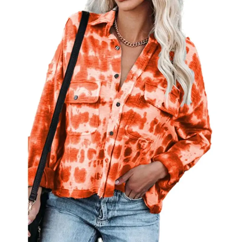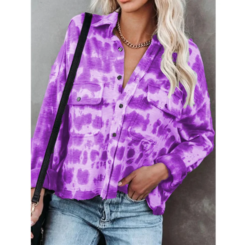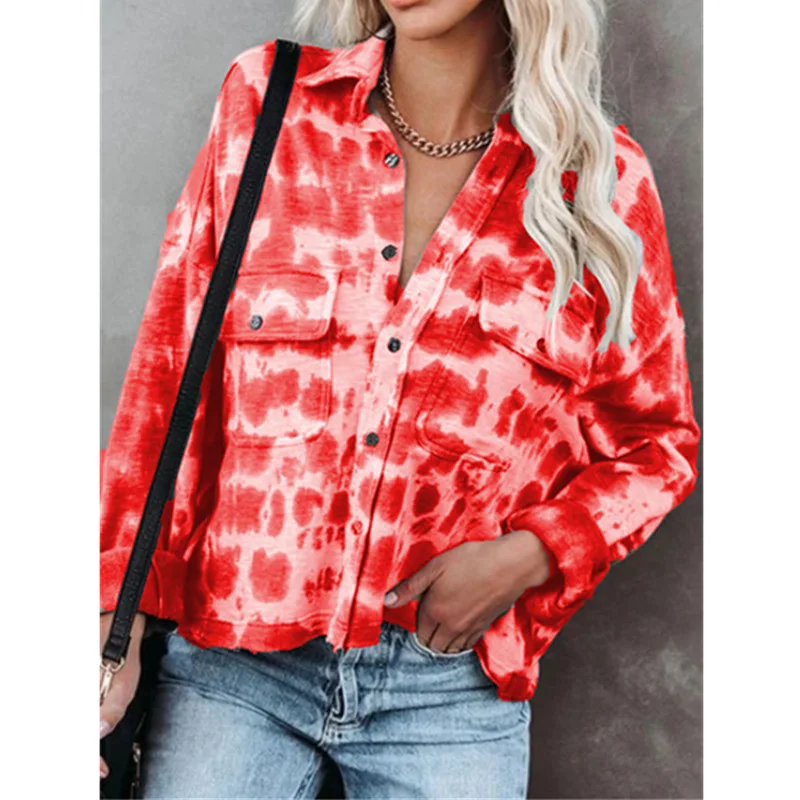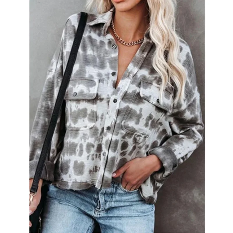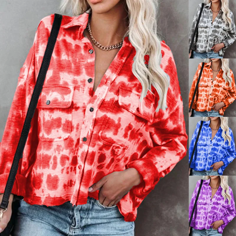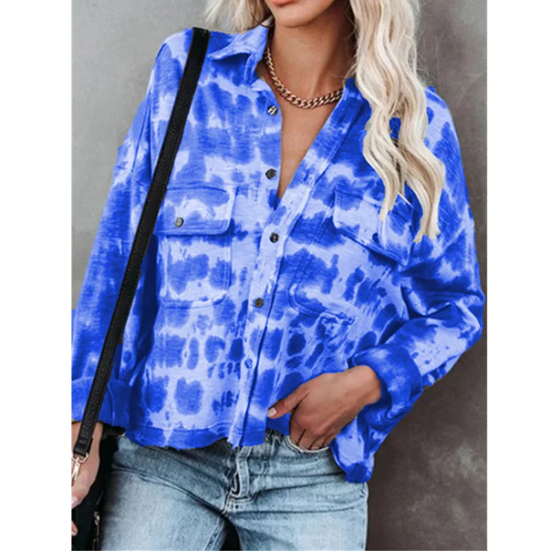 - Product Name: Autumn new style women's tie-dye printing lapel long-sleeved T-shirt top