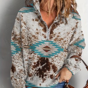 - Product Name: Aztec Print Pullover Sweatshirt, Casual Long Sleeve Half Zip Sweatshirt For Fall & Winter, Women's Clothing