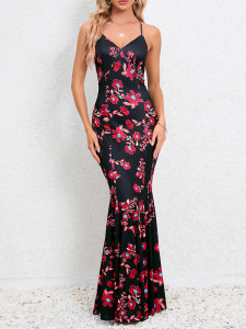 - Product Name: Bodycon Mermaid Flower Print Split-Joint Spaghetti-Neck Maxi Dresses