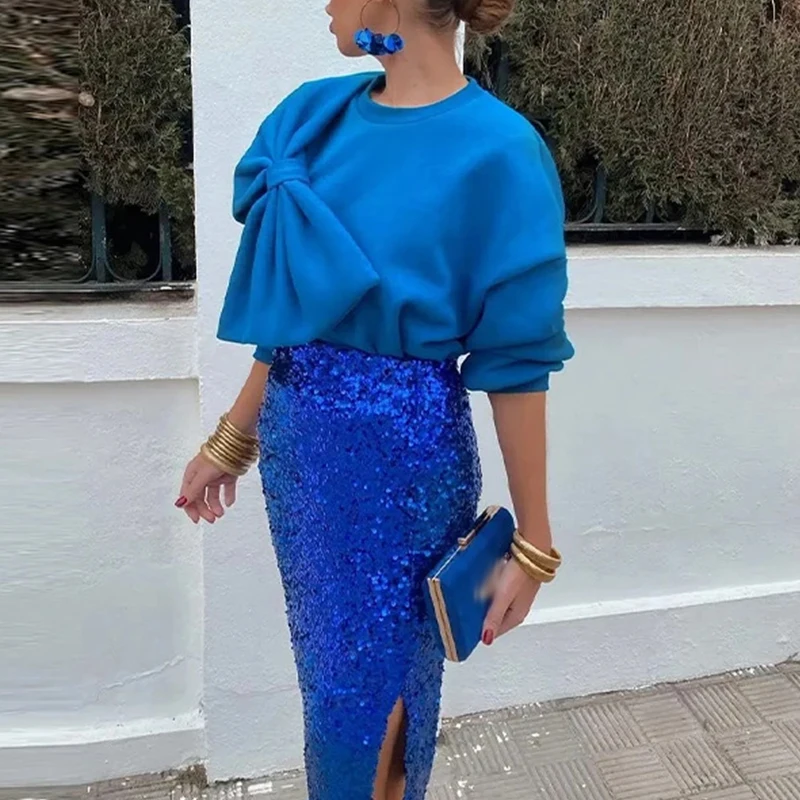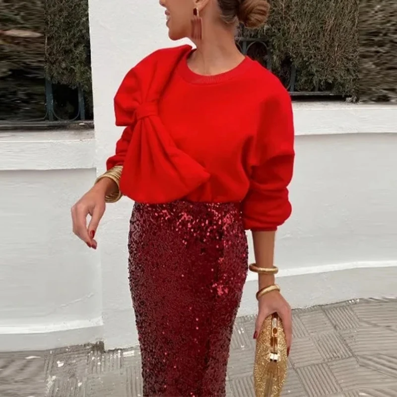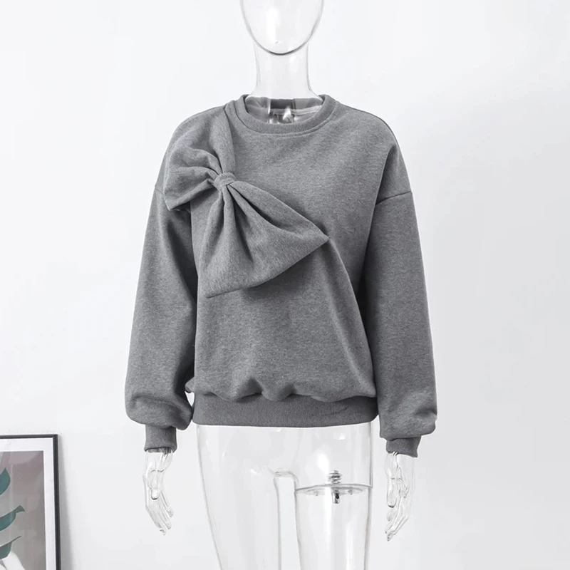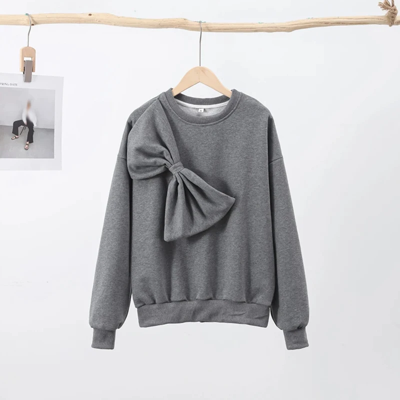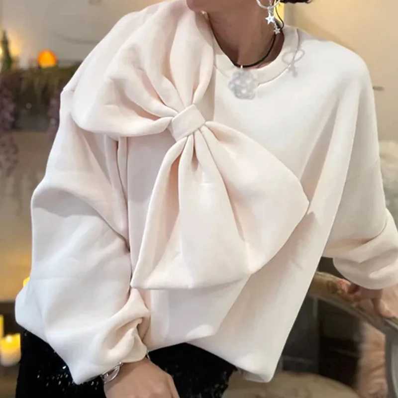 - Product Name: Bowknot Design Fashionable Sweatshirt Women New Spring Elegant O-neck Top Pullover Autumn Long Sleeve Solid Office Blouse Shirts