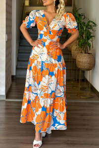 - Tag: Polyester , casual , print , Short Sleeve , V Neck , Patchwork , Ankle Length , Regular , Hubble-Bubble Sleeve , Full Print , Long
