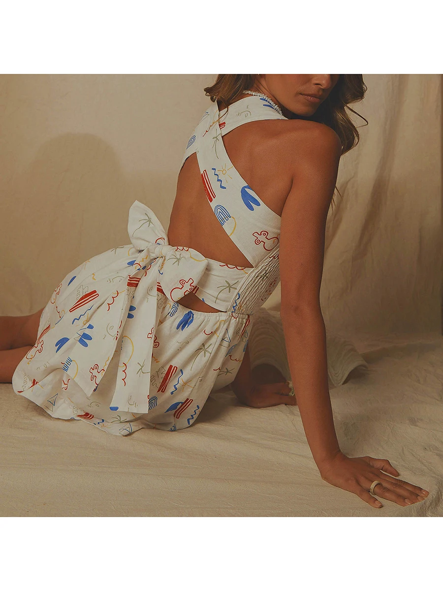 Chic Boho Beach Backless Casual A-Line Mini Dress
