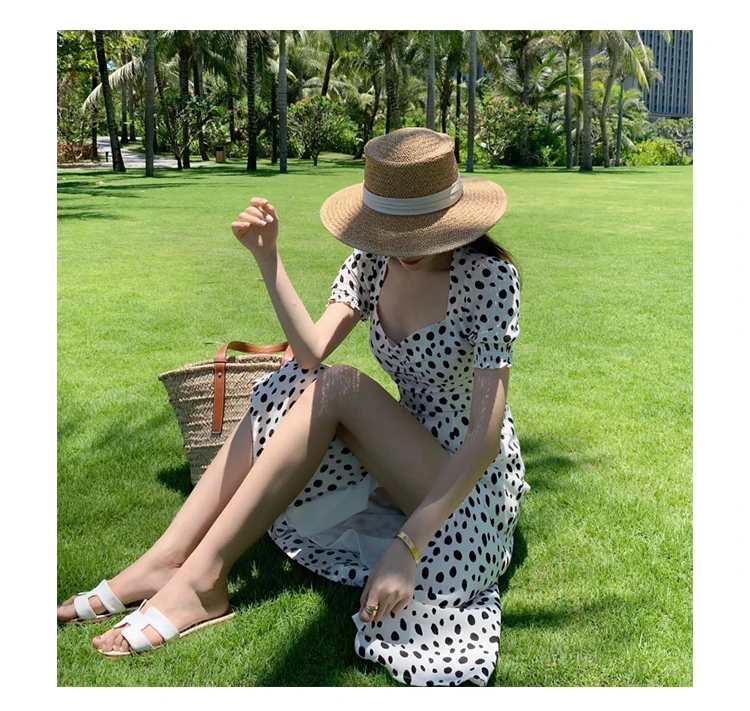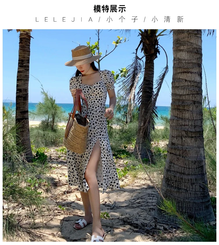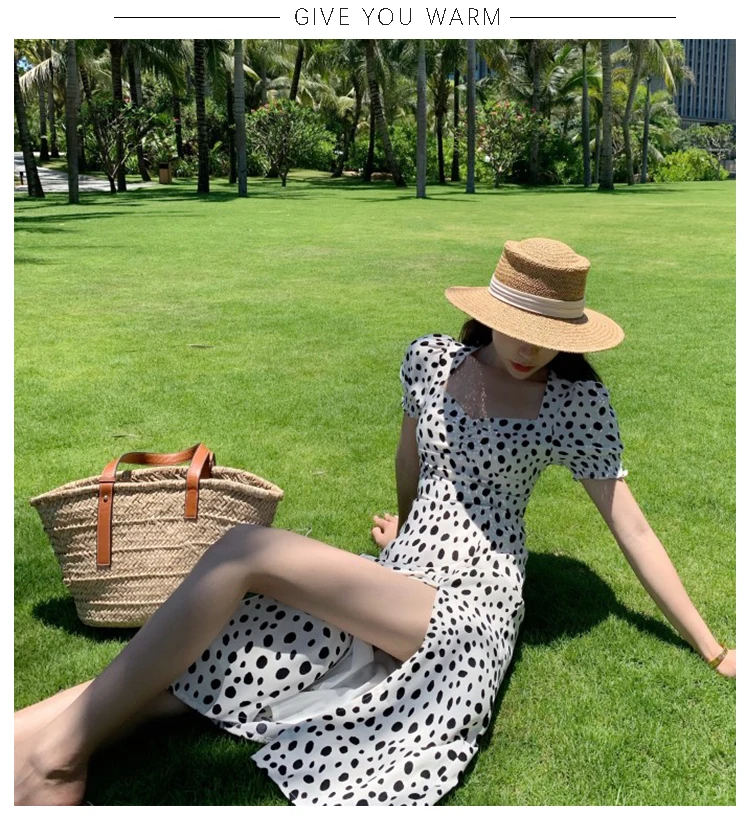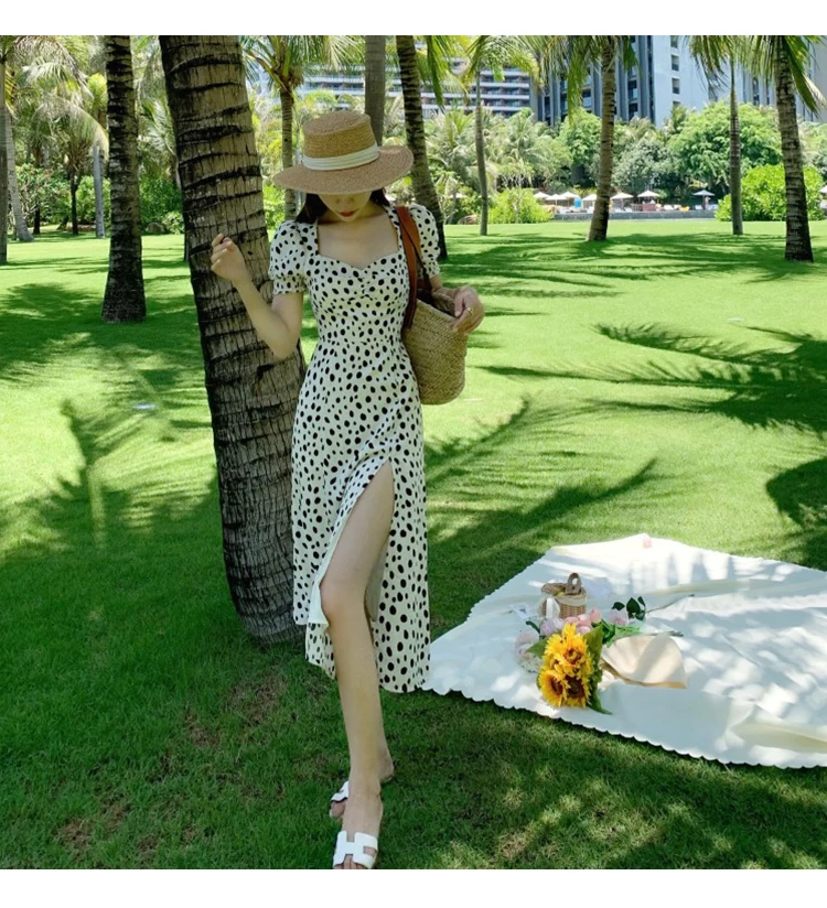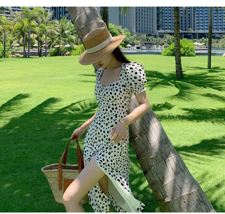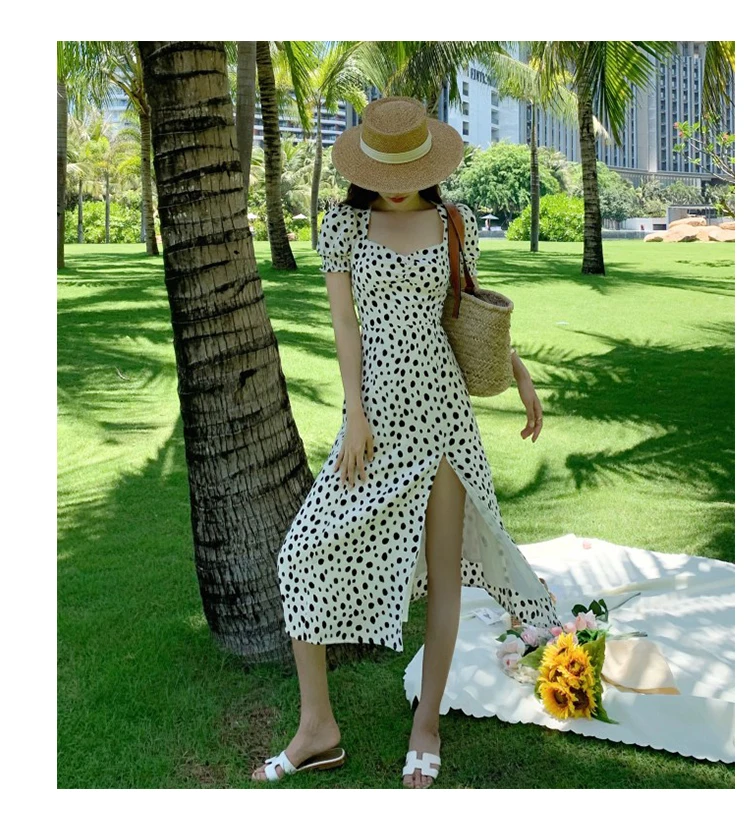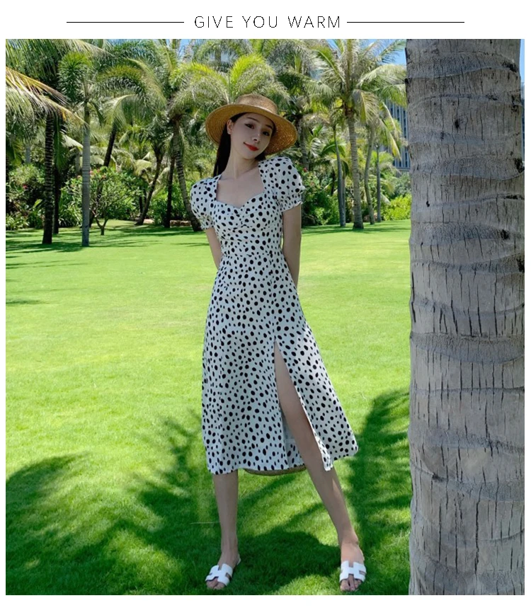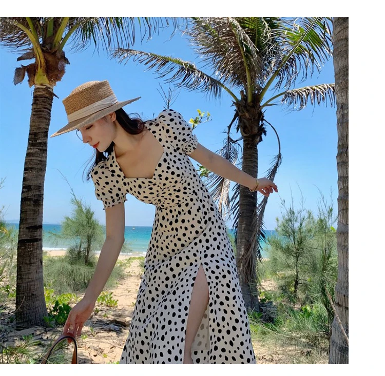 - Product Name: Dots Print Puff Short Sleeve Women Dress High Split Party Long Dresses Elegant Up Sweet Summer Club Sexy Dress