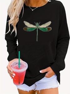 - Product Name: Dragonfly Print Sweatshirt, Casual Long Sleeve Crew Neck Sweatshirt For Spring & Fall, Women's Clothing