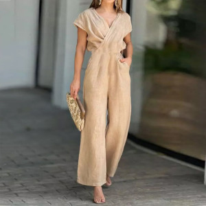 • Product Name: Elegant Casual Short Sleeve Loose V Neck High Waist Wide Leg Jumpsuit