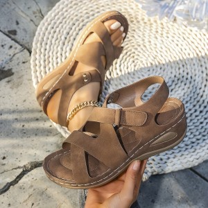 - Product Name: Elegant Women's Summer Sandals - Thick Sole, Open Toe with Hook-and-loop Fastener Closure, Soft Faux Cover Wedge Heels