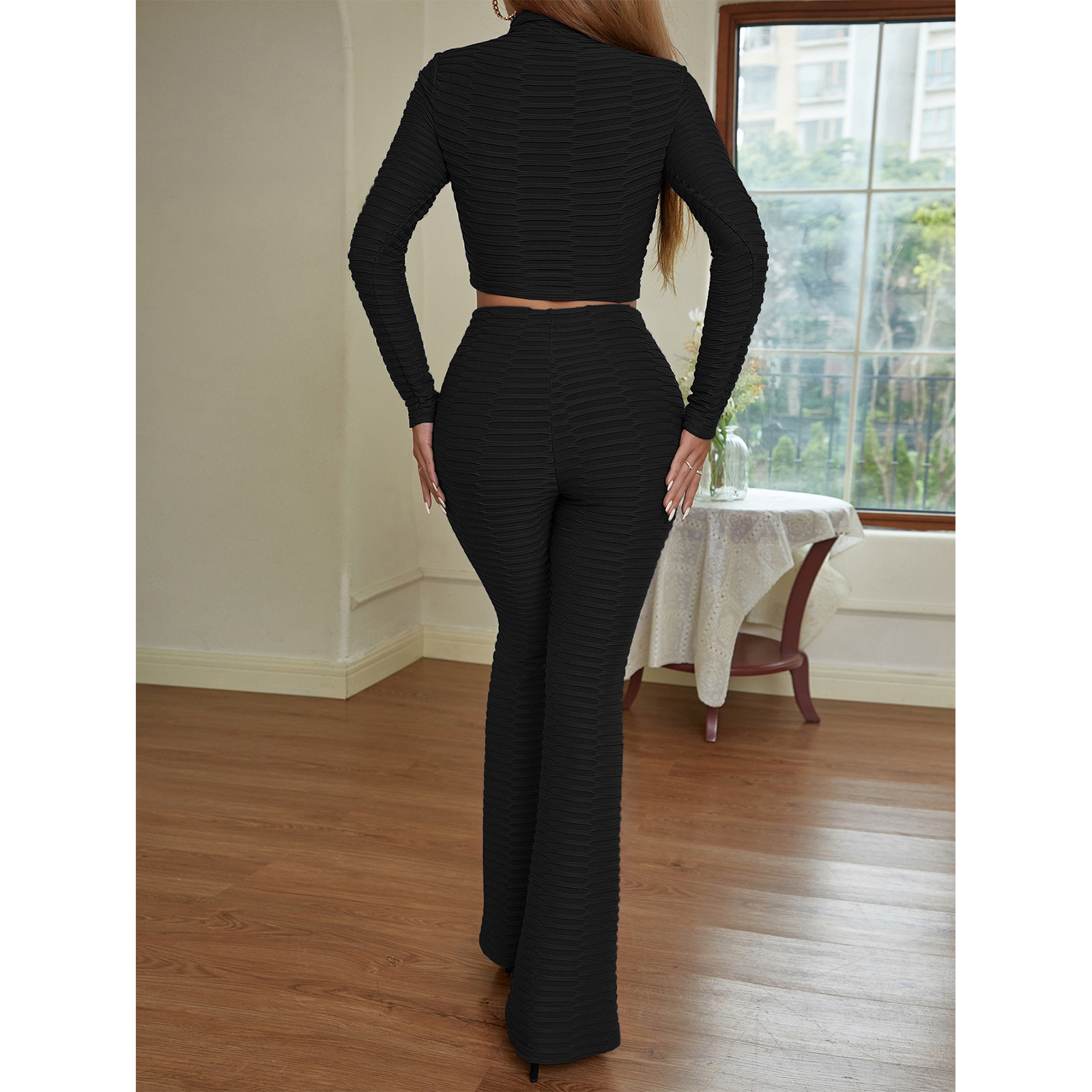 - Product Name: Fashion Casual Cropped Top Slim Fit Flared Pants Two-piece Outfits
