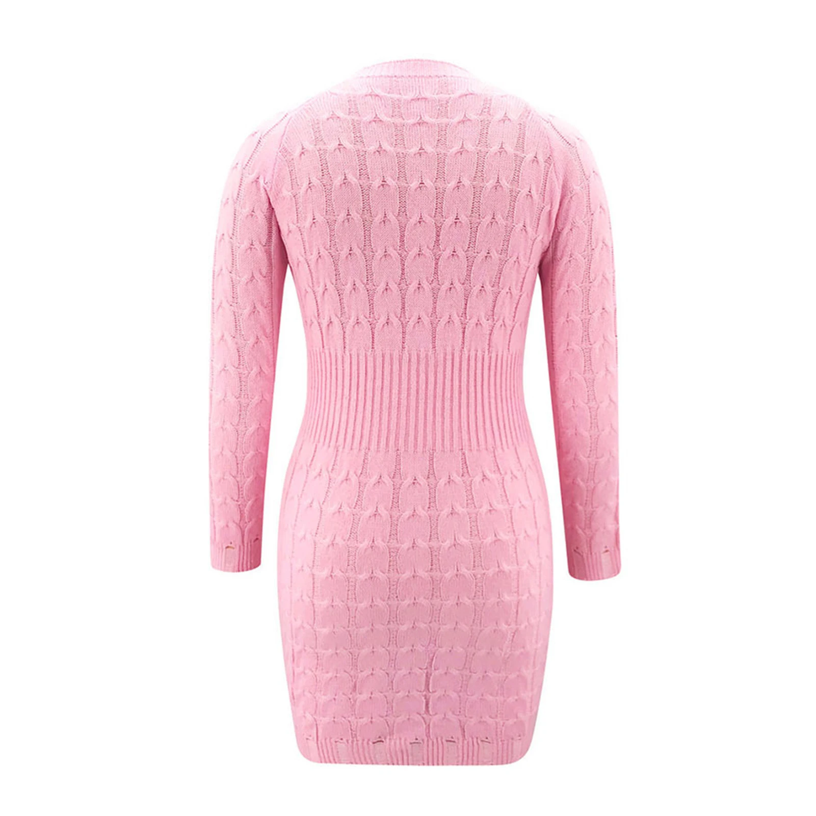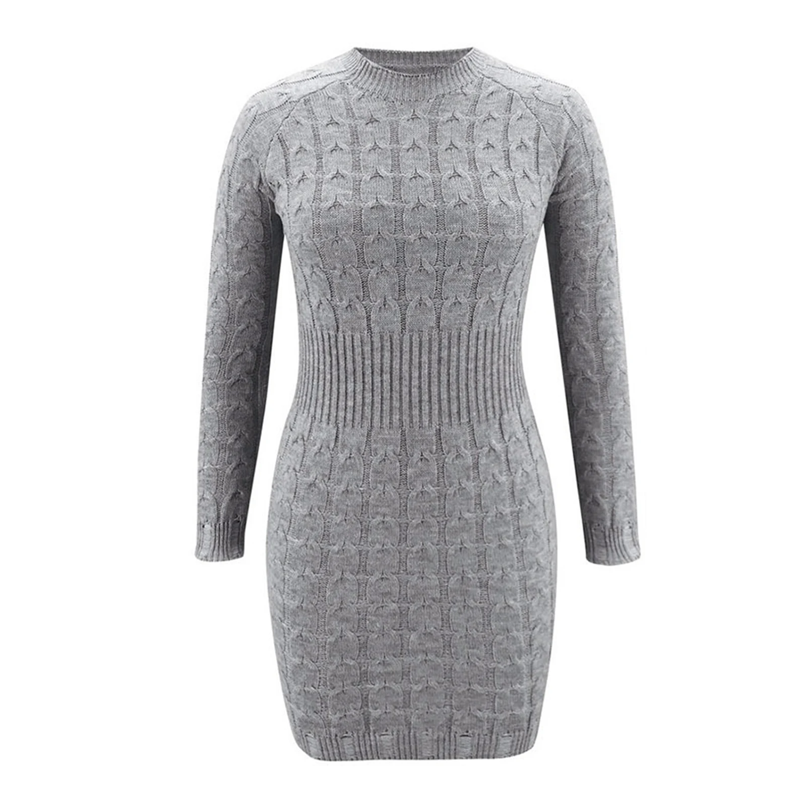 • Product Name: Fashion Elegant Solid Color O-Neck Long Sleeve Knit Skinny Mini Sweater Dress