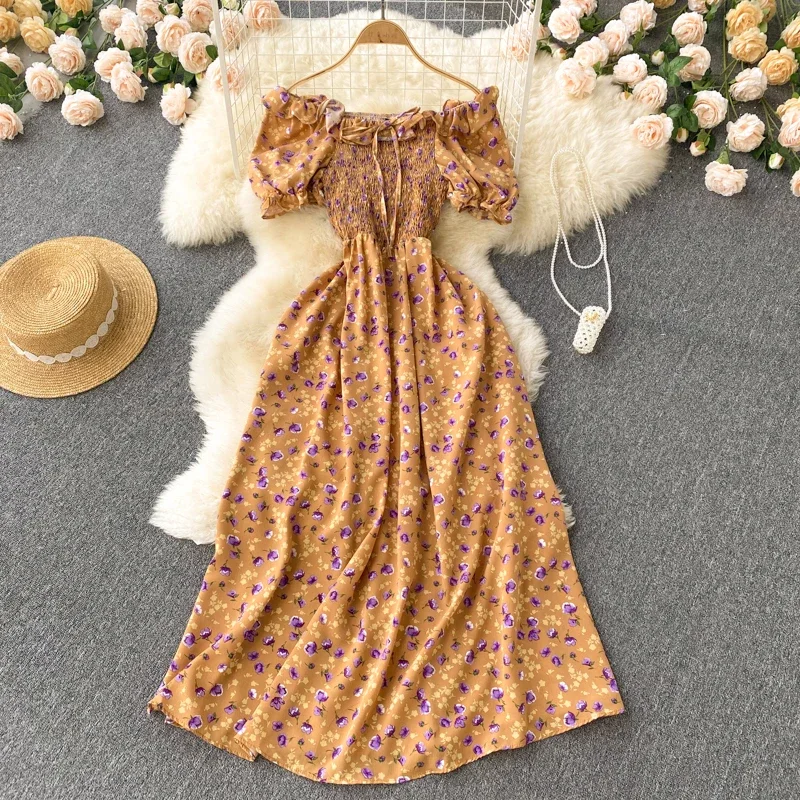 - Product Name: Fashion Floral Robe Print Ruffle Bohemian Sexy Casual Elegant Strapless Maxi Dresses