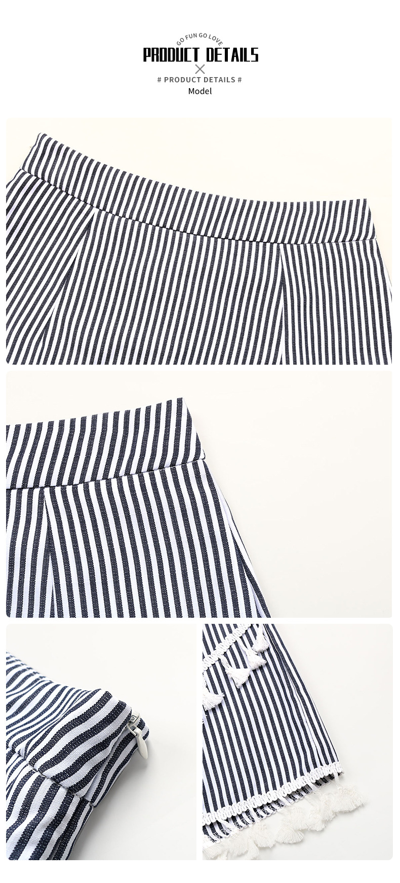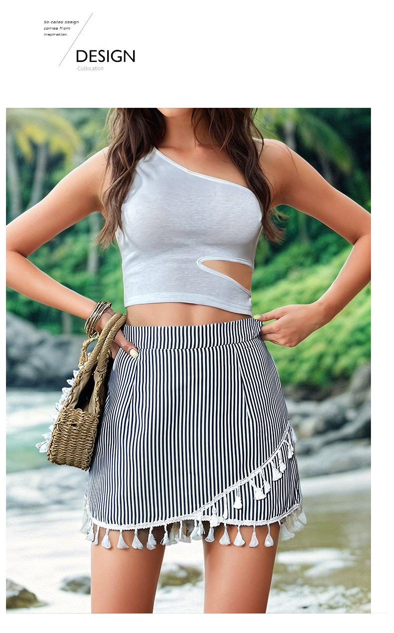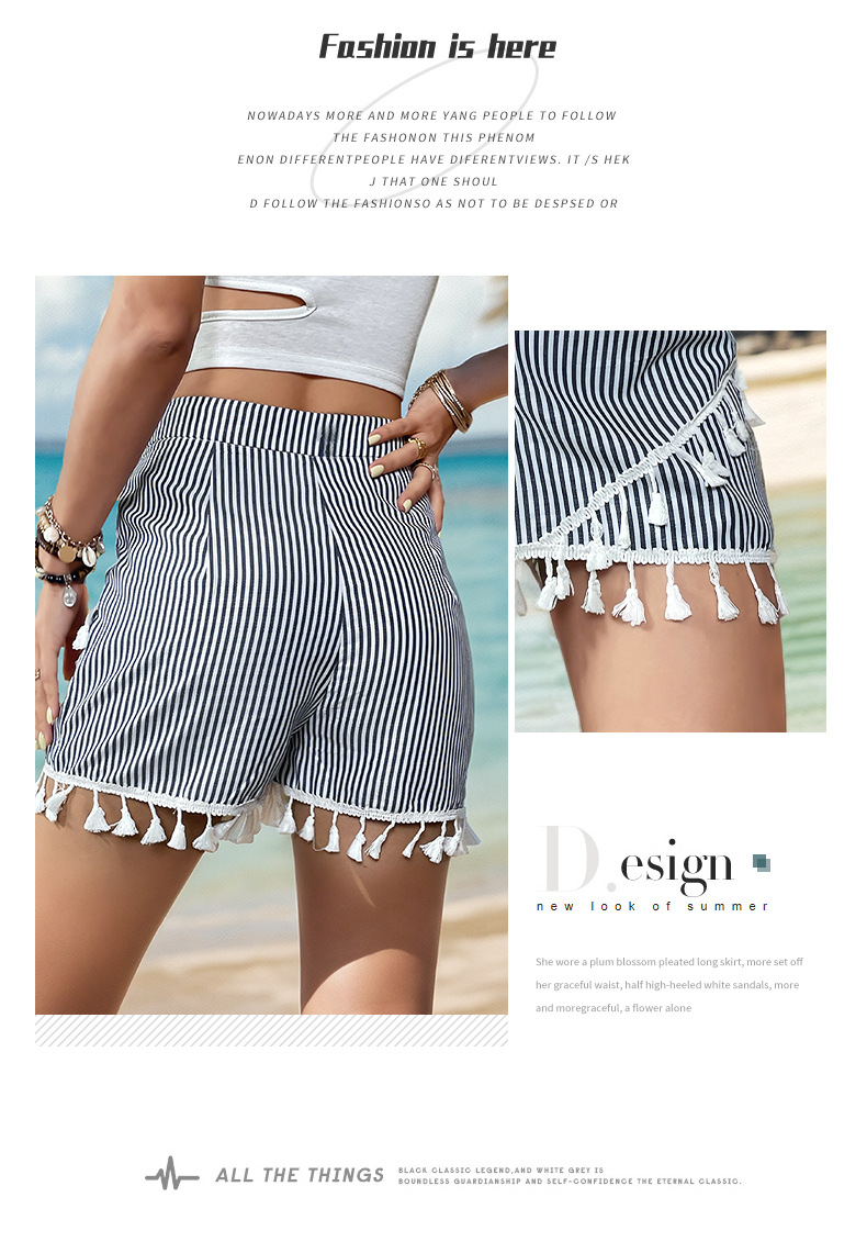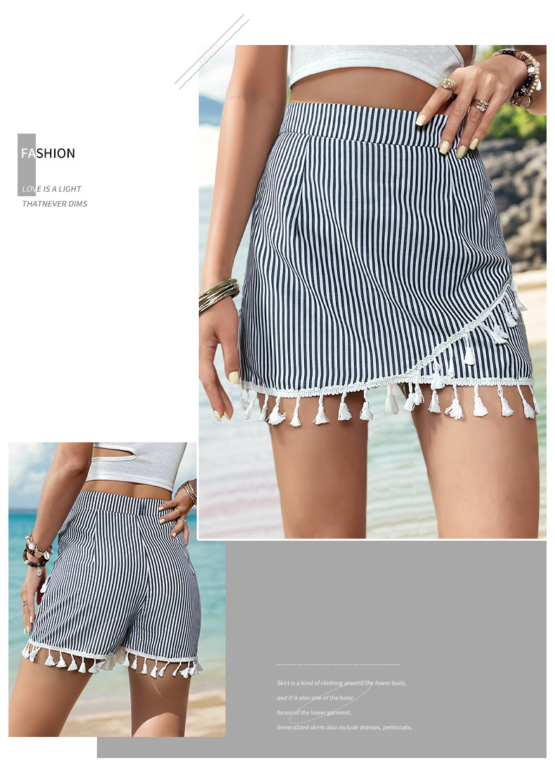 - Product Name: Fashion Sexy Mini Shorts Trendy Striped Printing A-line Skirt Elegant Tassel Trim Casual Short Skirts