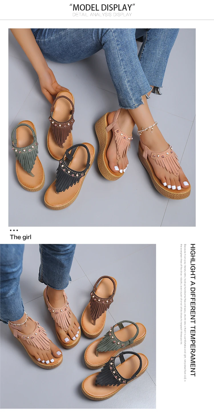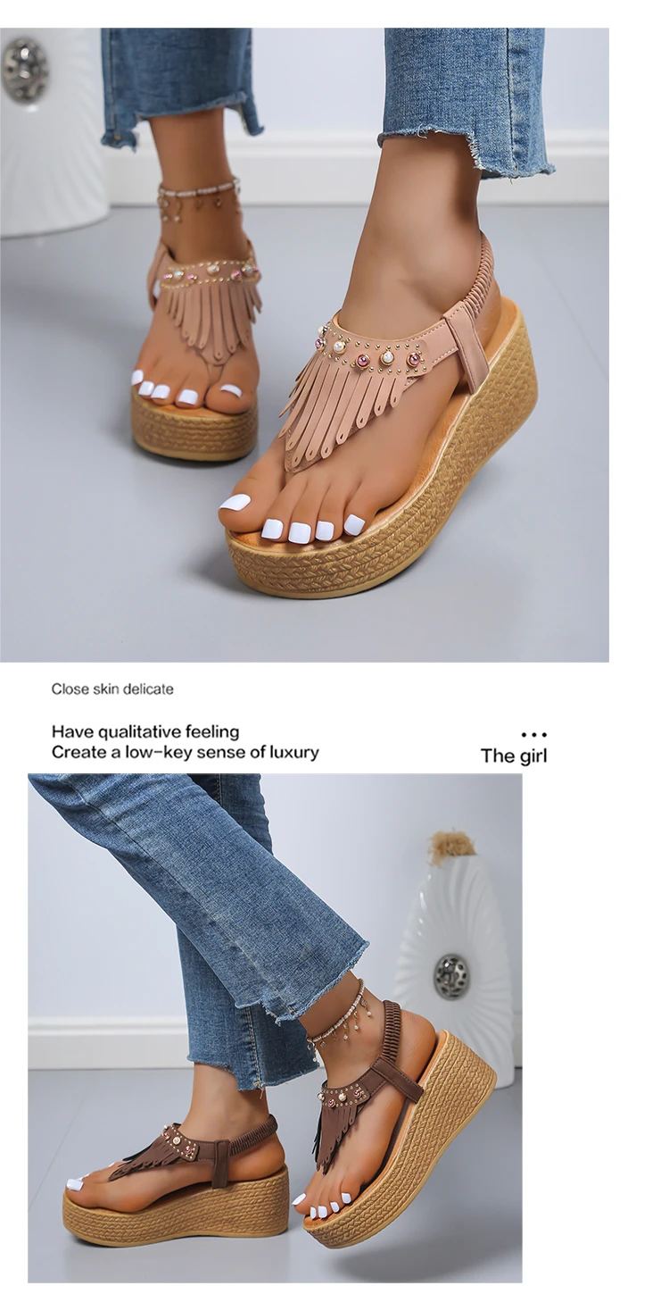 - Product Name: Fashion Tassel Flower Print Wedge Non-slip Casual Sandals
