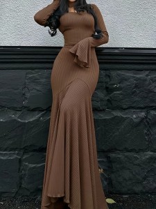 - Product Name: Flared Sleeve Mermaid Dress Flared Sleeve Mermaid Dress | Round Neck Solid Color Style
