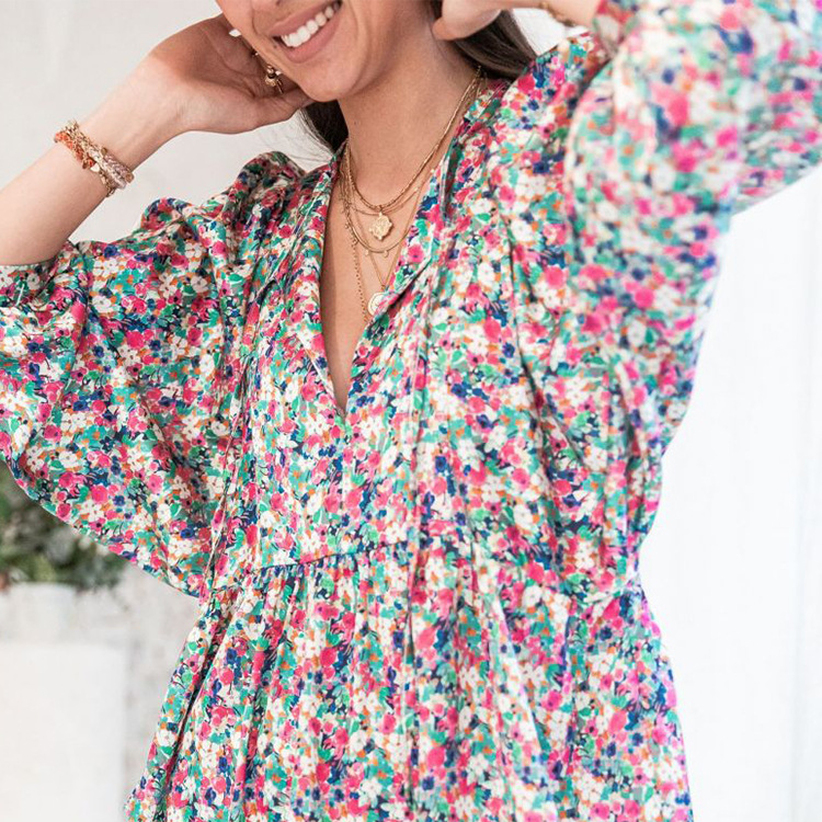 - Product Name: Floral Resort V-Neck High Waist Loose A-Line Casual Dresses