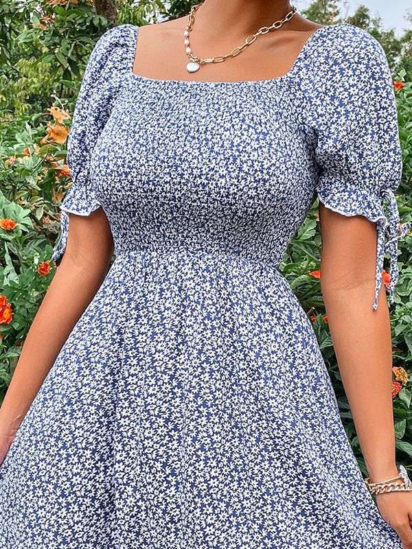 Home>Women's Dresses>Mini Dresses>Flower Fresh Sweet Bubble Sleeve Pharmaceutical Collars Clips Mini Dresses