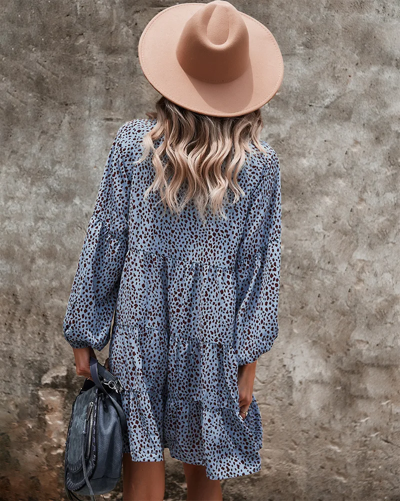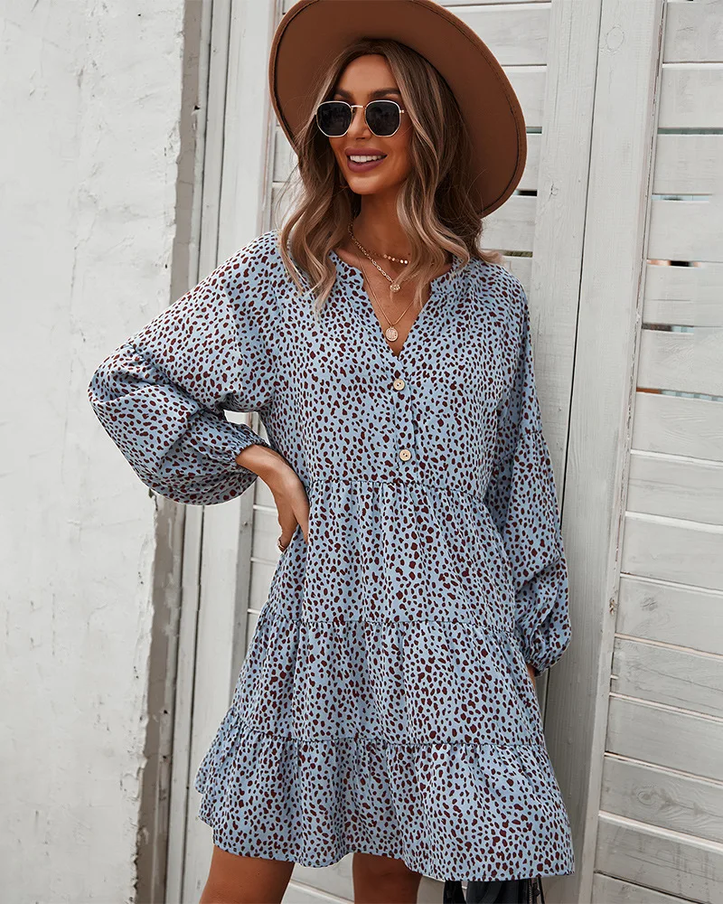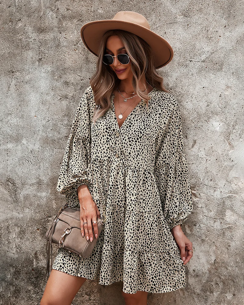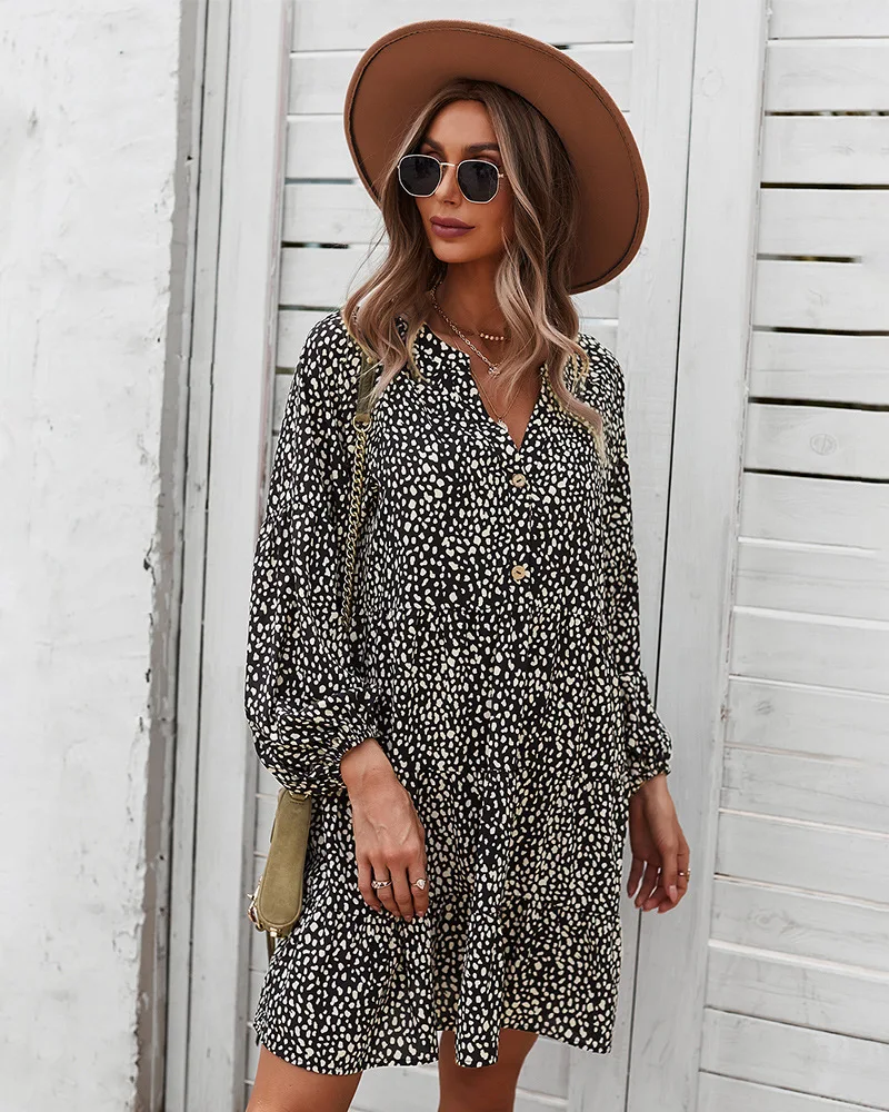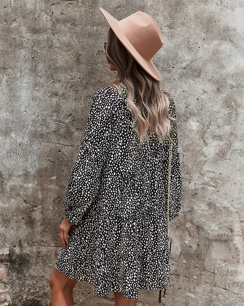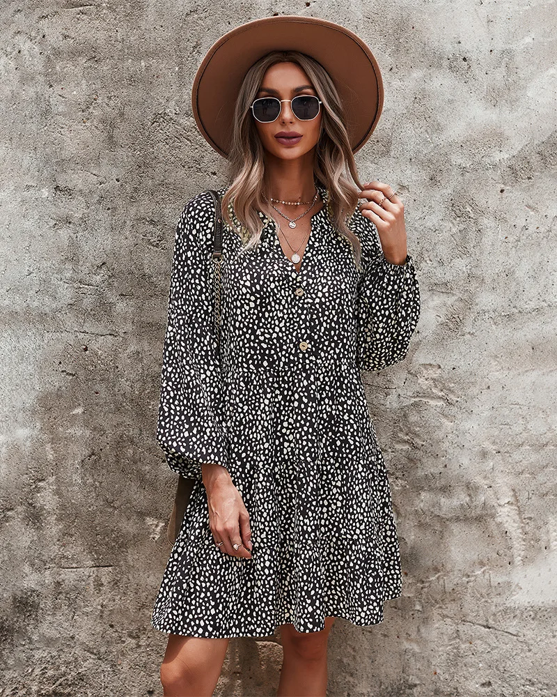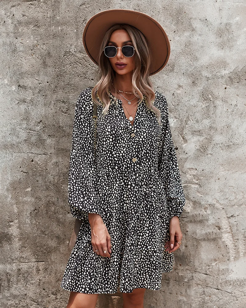 - Product Name: Ladies Vintage Spring Autumn Dress Women Dot Print Long Sleeve V Neck Casual Holiday Women Mini Dress Female Vestidos