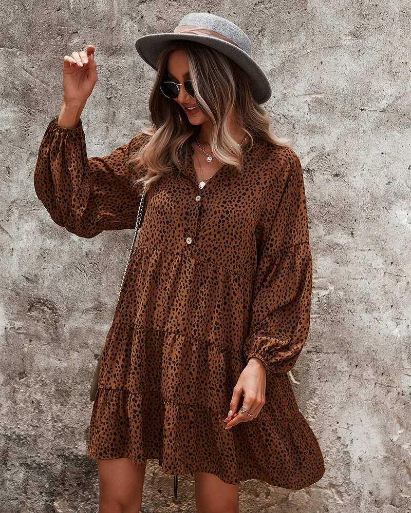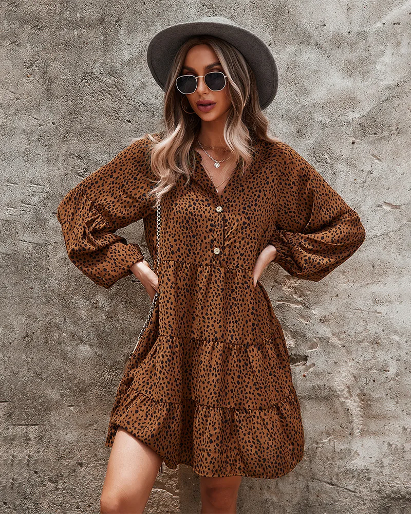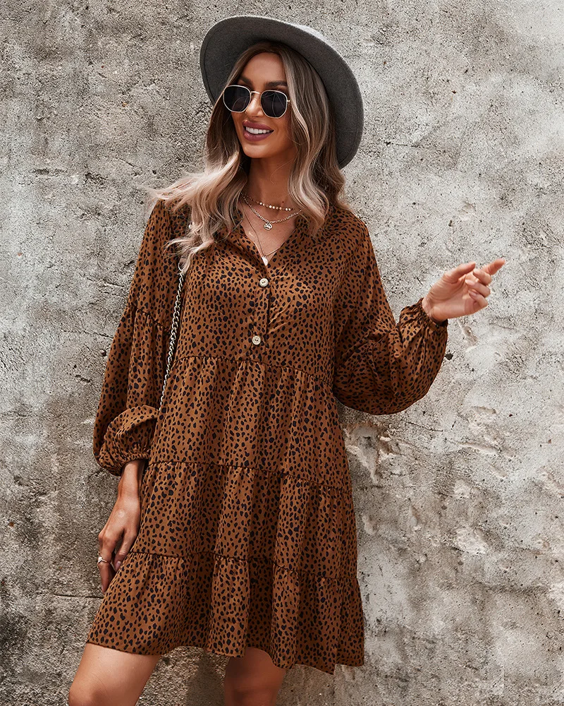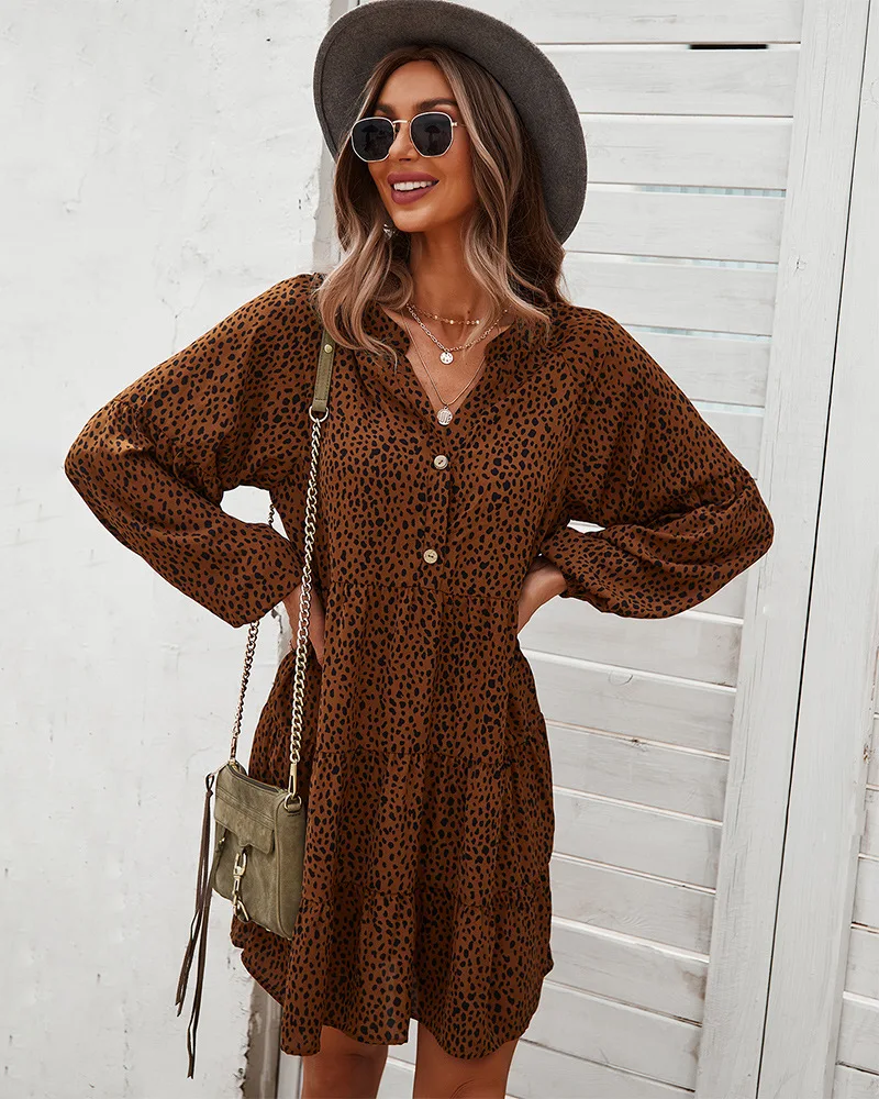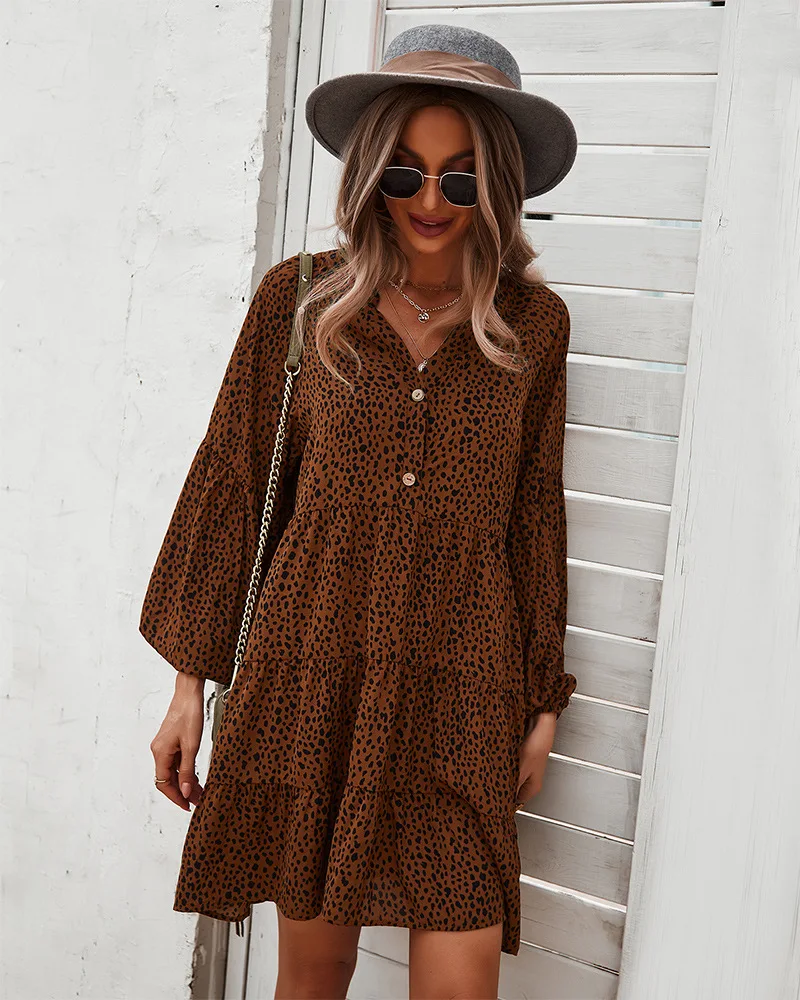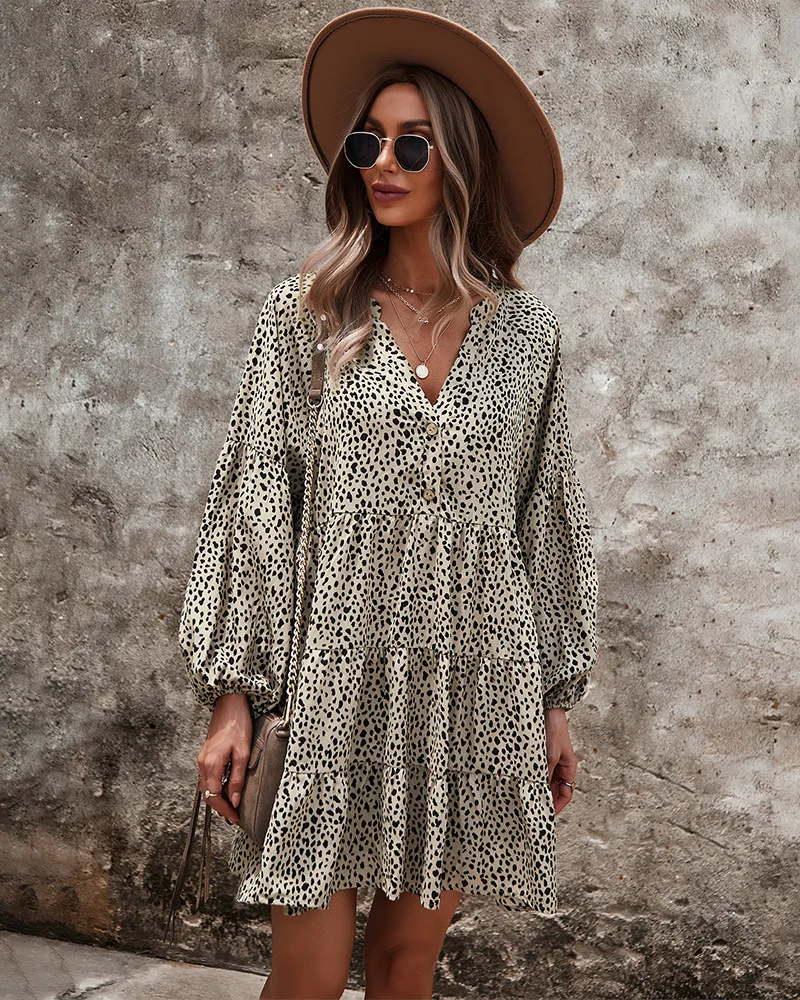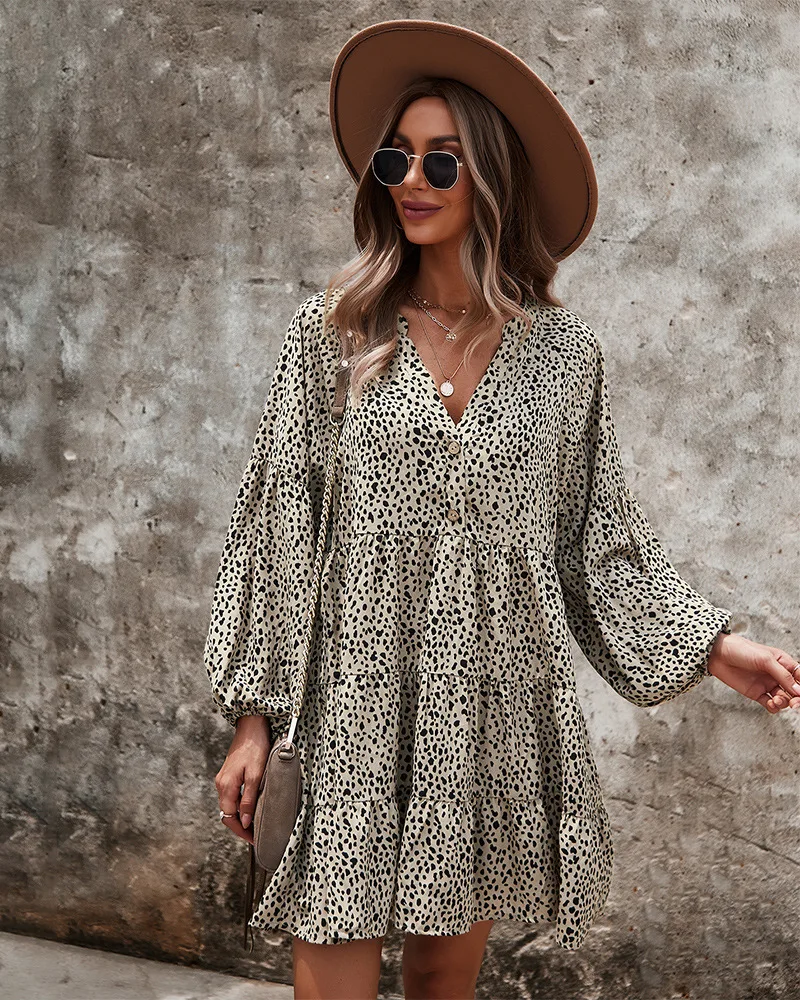 - Product Name: Ladies Vintage Spring Autumn Dress Women Dot Print Long Sleeve V Neck Casual Holiday Women Mini Dress Female Vestidos