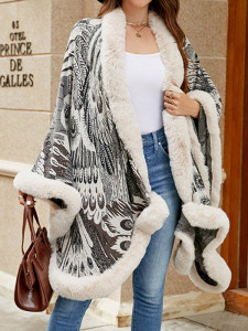 - Product Name: Long Sleeves Loose Jacquard Keep Warm Velvet Collarless Cape Shawl