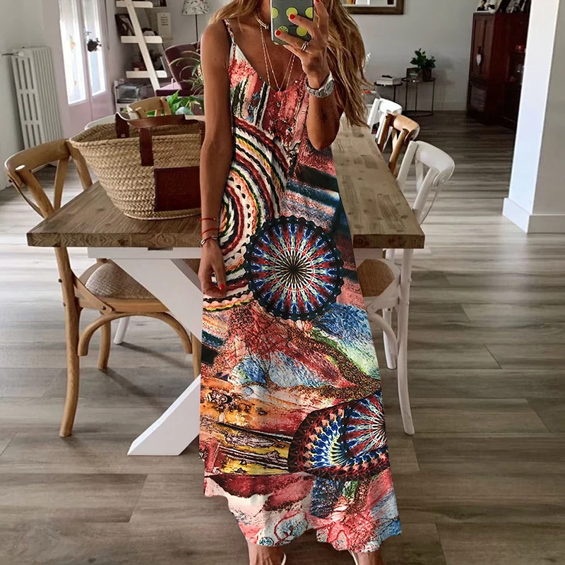 Maxi Slip Loose Dresses Women Boho Print Ladies Plus Size Party Summer Beach Holiday Long Dress Vestidos Female 2021