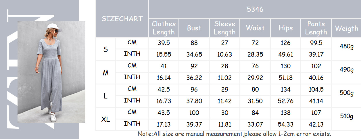 - Product Name: New Casual Women's Short Sleeve U Neck Loose Wide Leg Jumpsuit