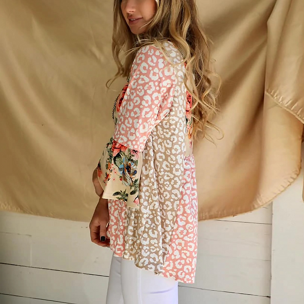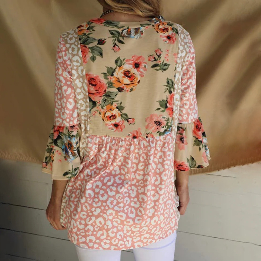 - Product Name: New Printed Patchwork Contrast Color 3/4 Sleeves Loose Casual Blouses & Shirts