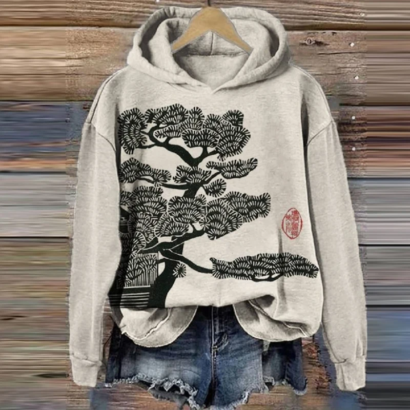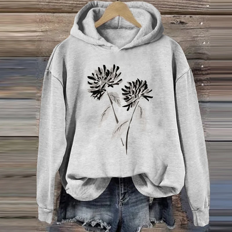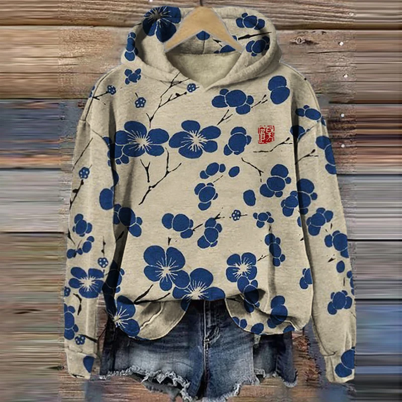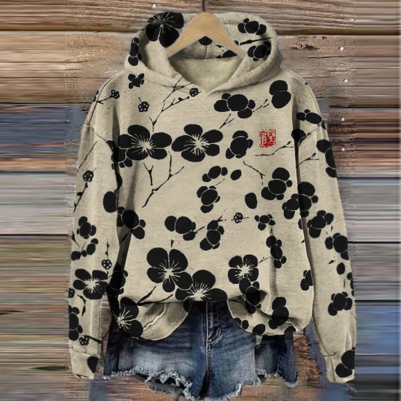 - Product Name: O Neck Sweatshirt Women Long Sleeve Print Plum Blossom Casual Loose Pullover Top