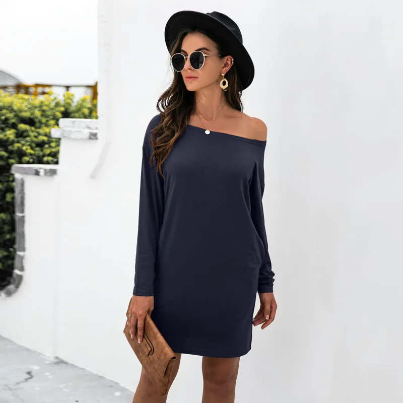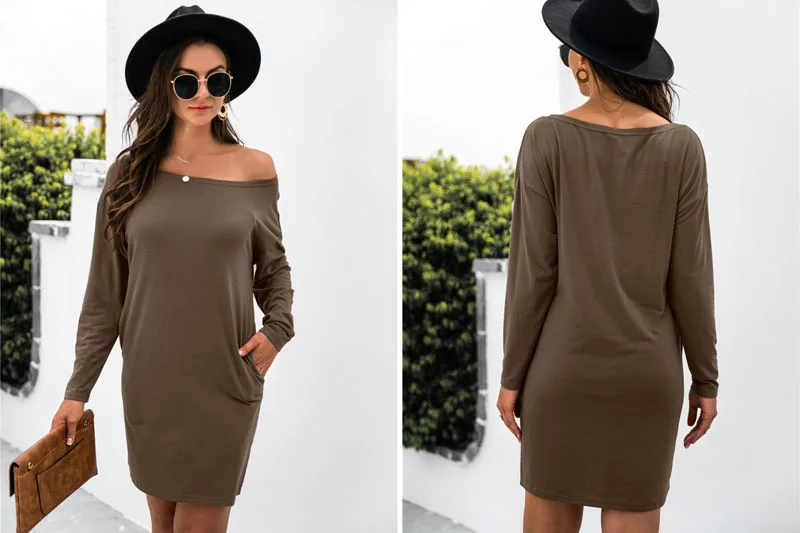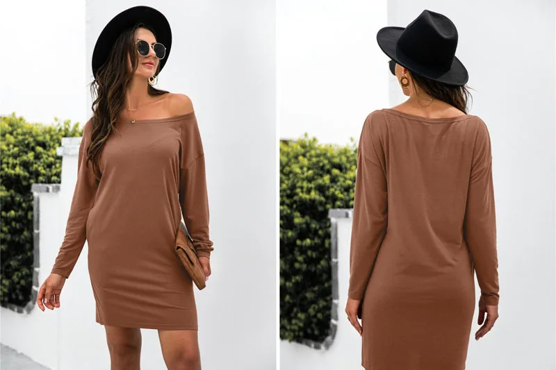 - Product Name: Off One Shoulder Long Sleeve Dress Women Fall 2021 New Casual T-Shirt Dresses Vestidos Mujer Solid Color Womans Clothing