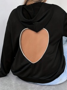 - Product Name: Plus Size Sexy Sweatshirt, Women's Plus Heart Cut Out Back Long Sleeve Drawstring Medium Stretch Hoodie
