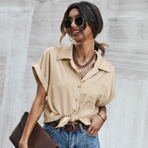 - Product Name: Short Sleeve Solid V-Neck Casual Chiffon Satin Elegant Button-Up Blouses & Shirt