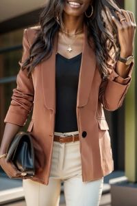 - Product Name: Solid Button Front Blazer, Casual Lapel Collar Flap Pocket Blazer, Women's Clothing