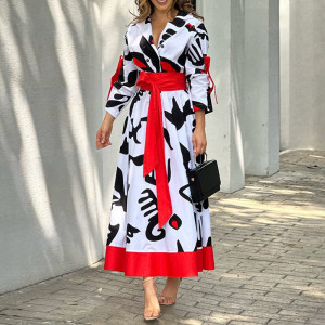 - Product Name: Spring New Temperament Long-sleeved Tie-up Dress