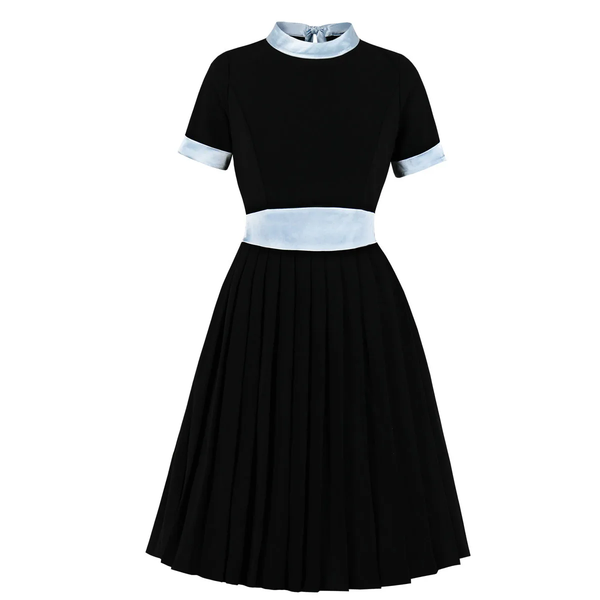 Brand Name:streetally,Silhouette:A-LINE,Origin:CN(Origin),Season:Summer,Neckline:STAND,Sleeve Style:Regular,Decoration:Bow,Style:vintage,Dresses Length:Knee-Length,Material:Polyester,Material:Spandex,Sleeve Length(cm):Short,