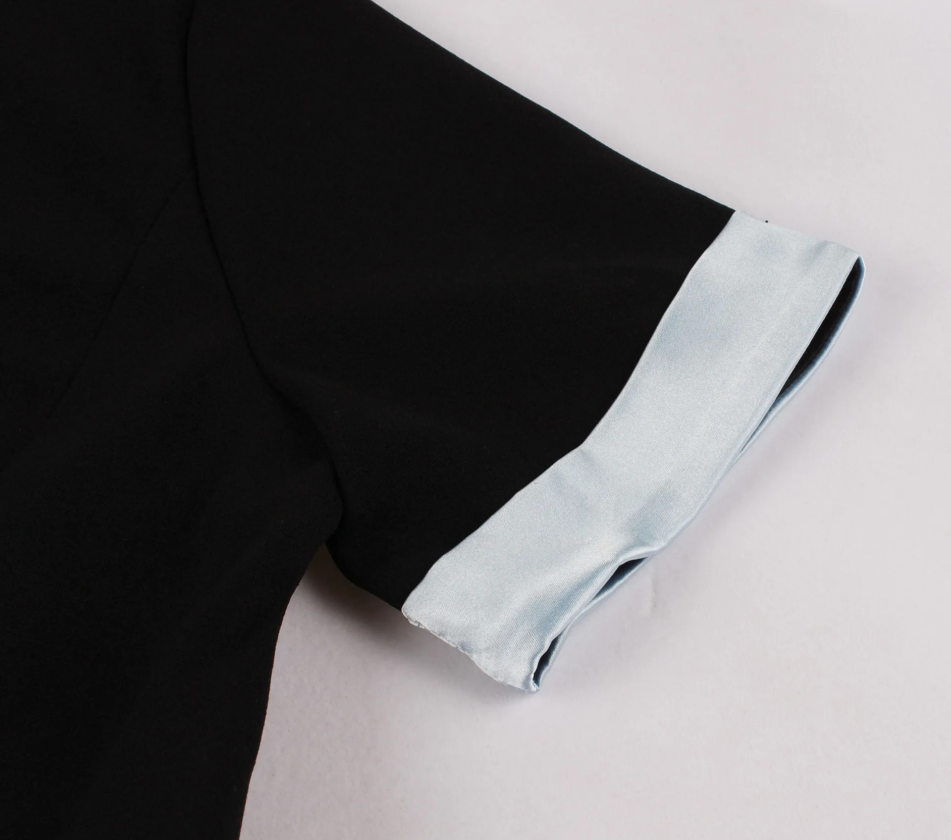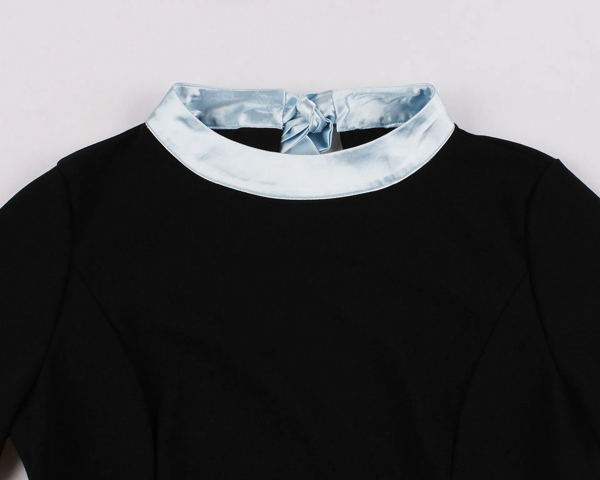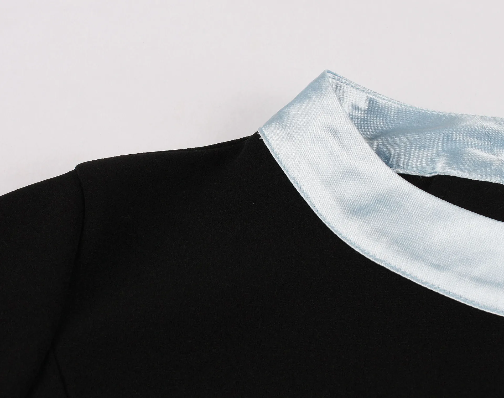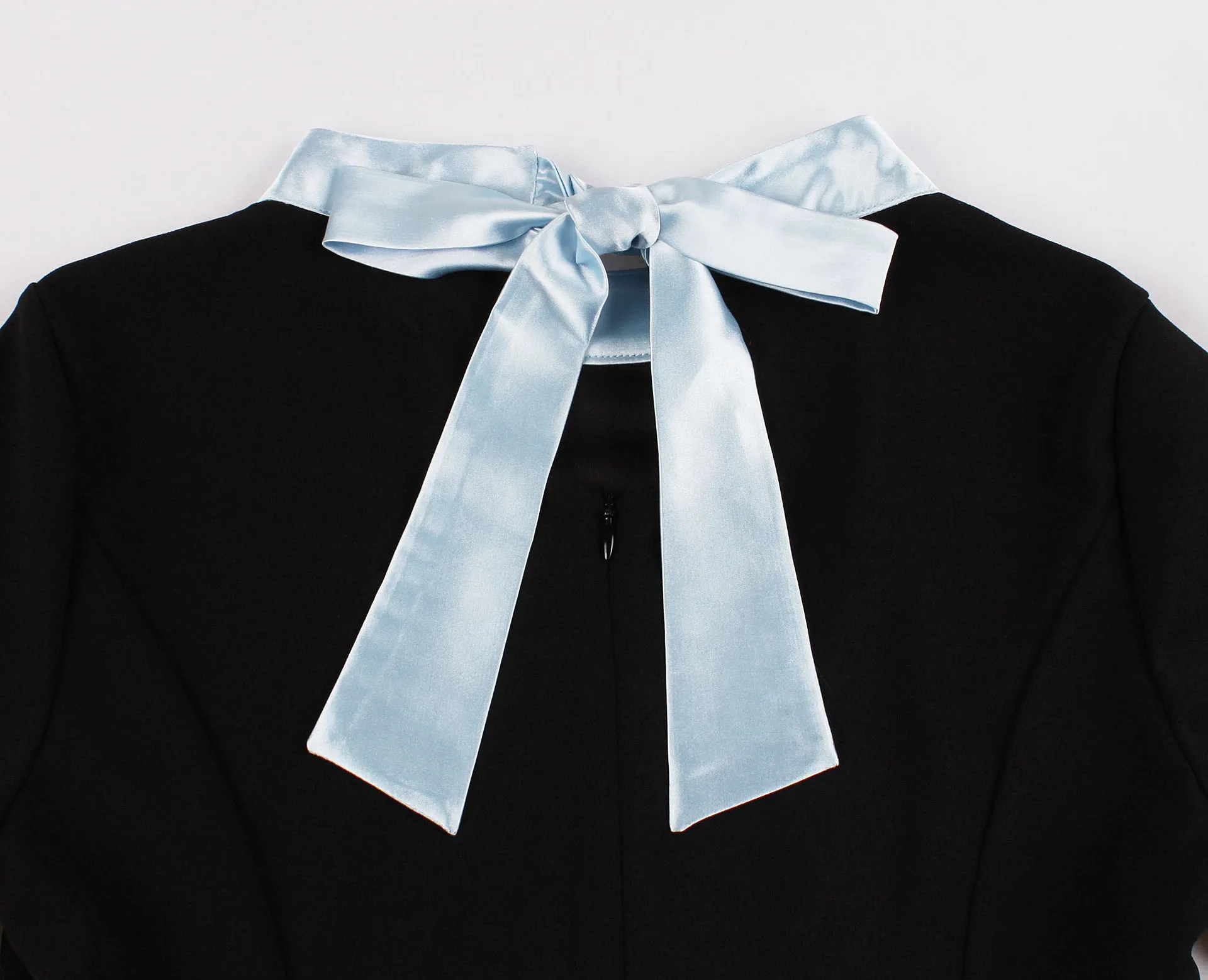 Stand Collar Bow Woman Dress VD1636 Black Blue Patckwork navidad Dresses for Women 2021 robe femme