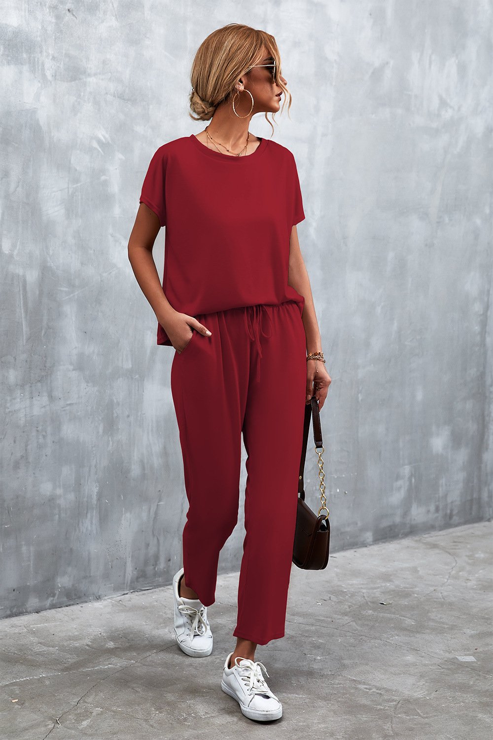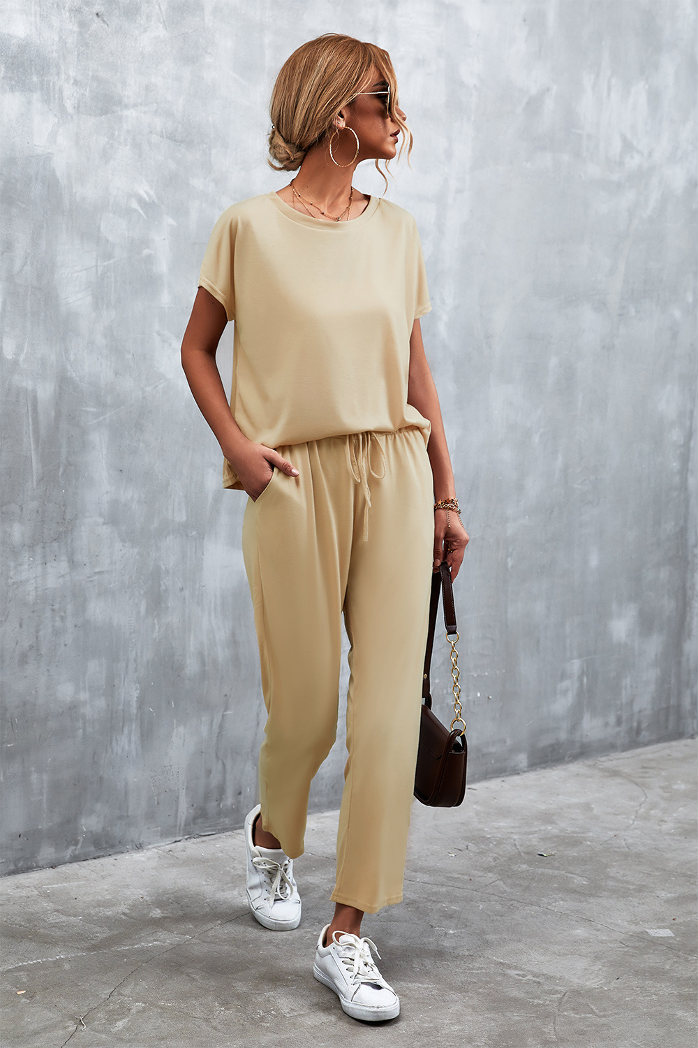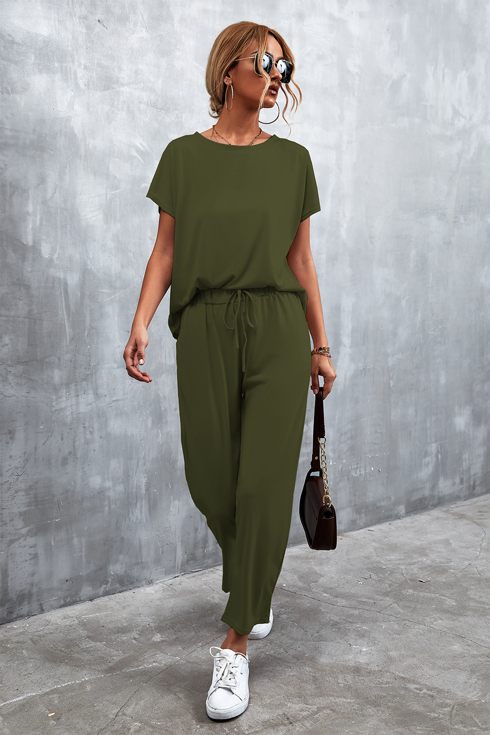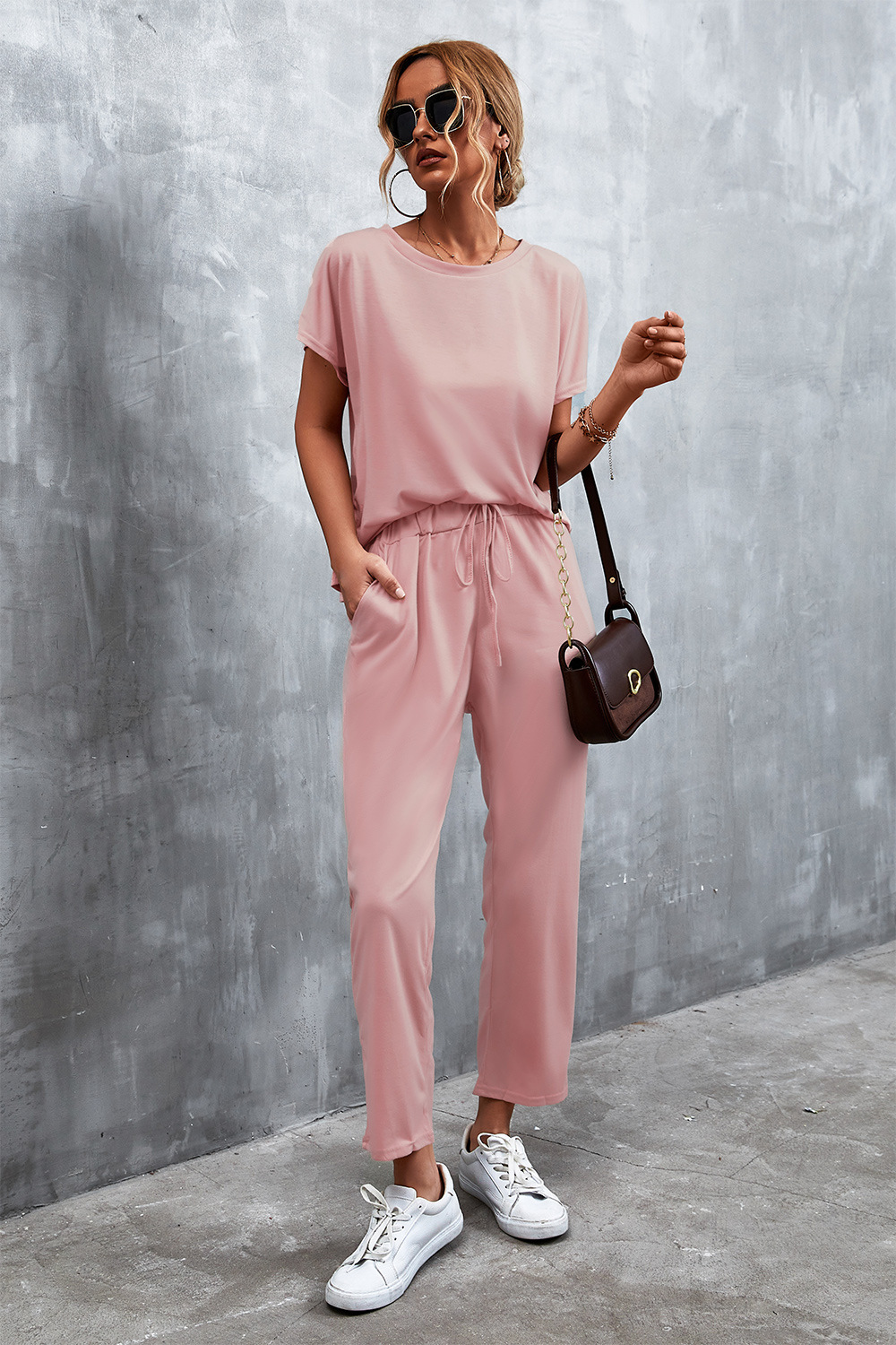 - Product Name: Summer New Solid Color Round Neck Short-sleeved Sports And Leisure Trousers Suit Jumpsuits