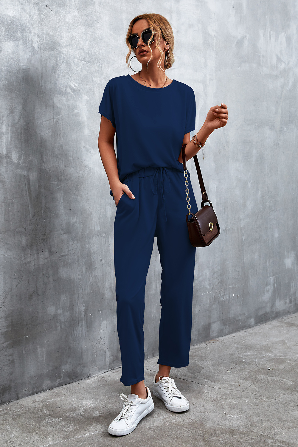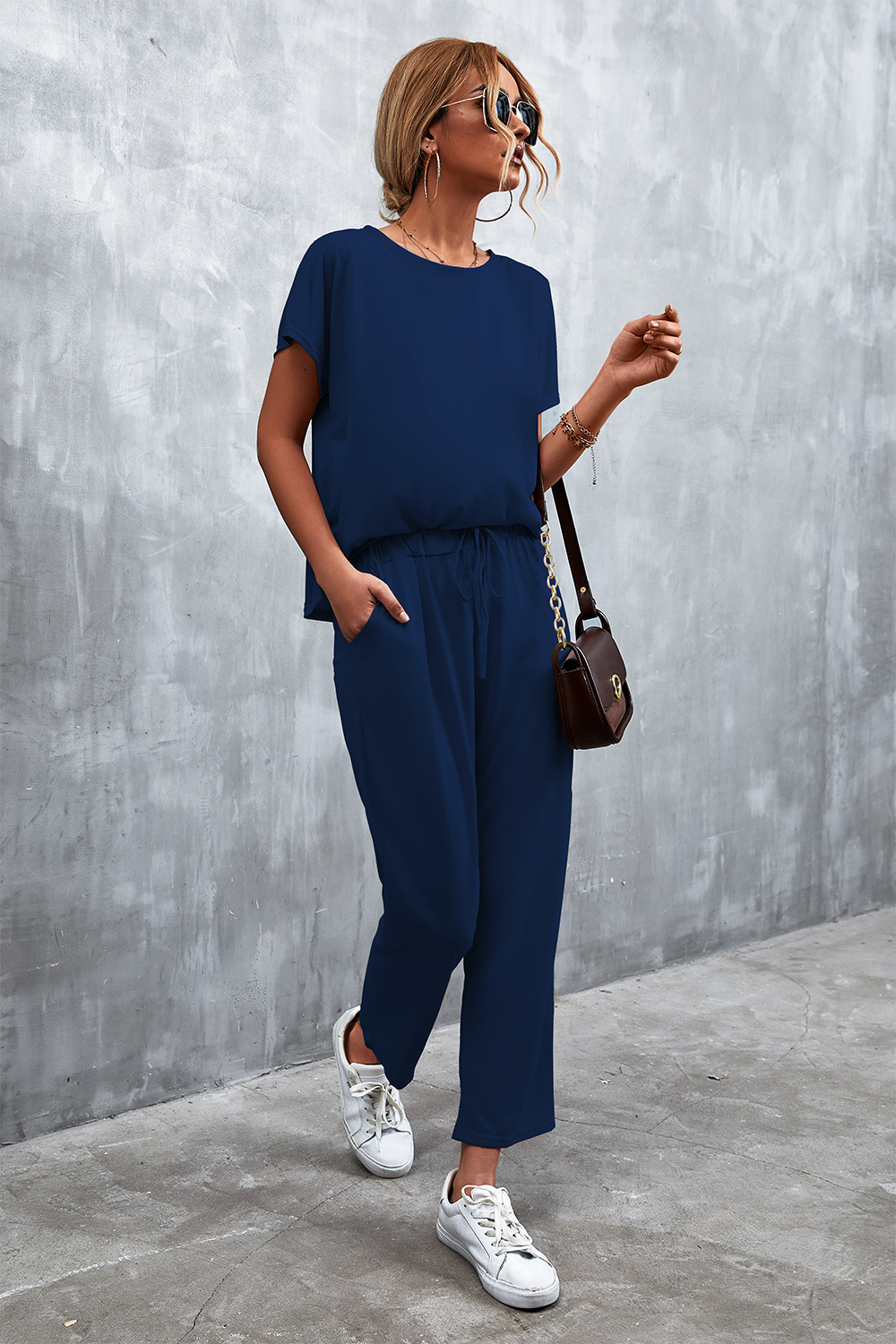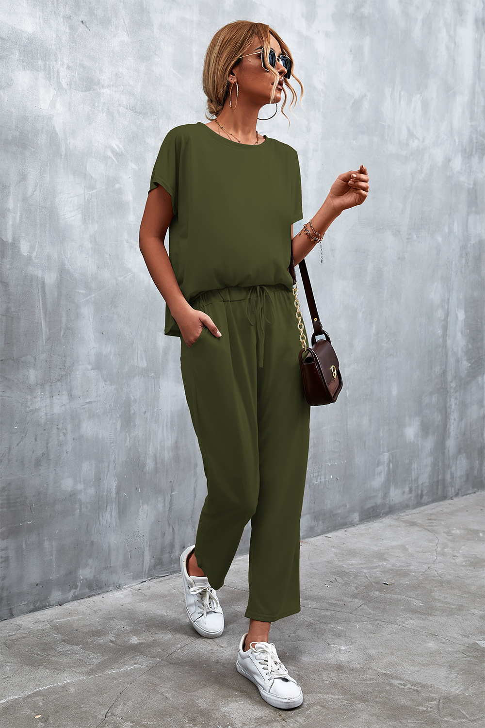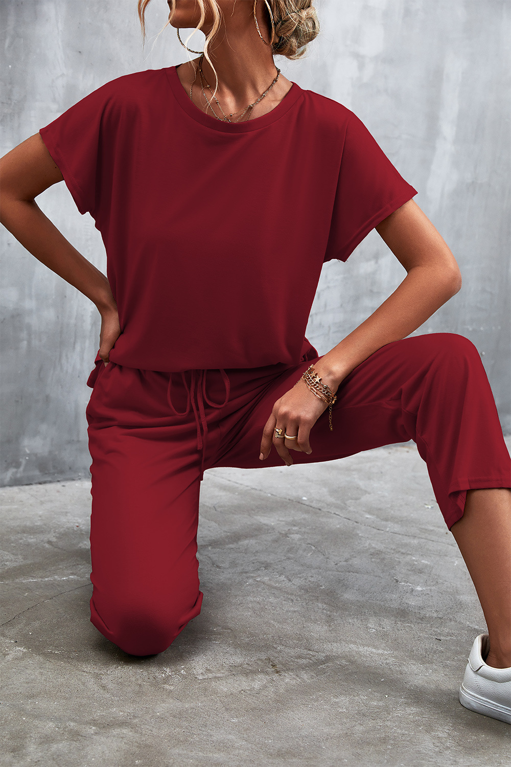 - Product Name: Summer New Solid Color Round Neck Short-sleeved Sports And Leisure Trousers Suit Jumpsuits