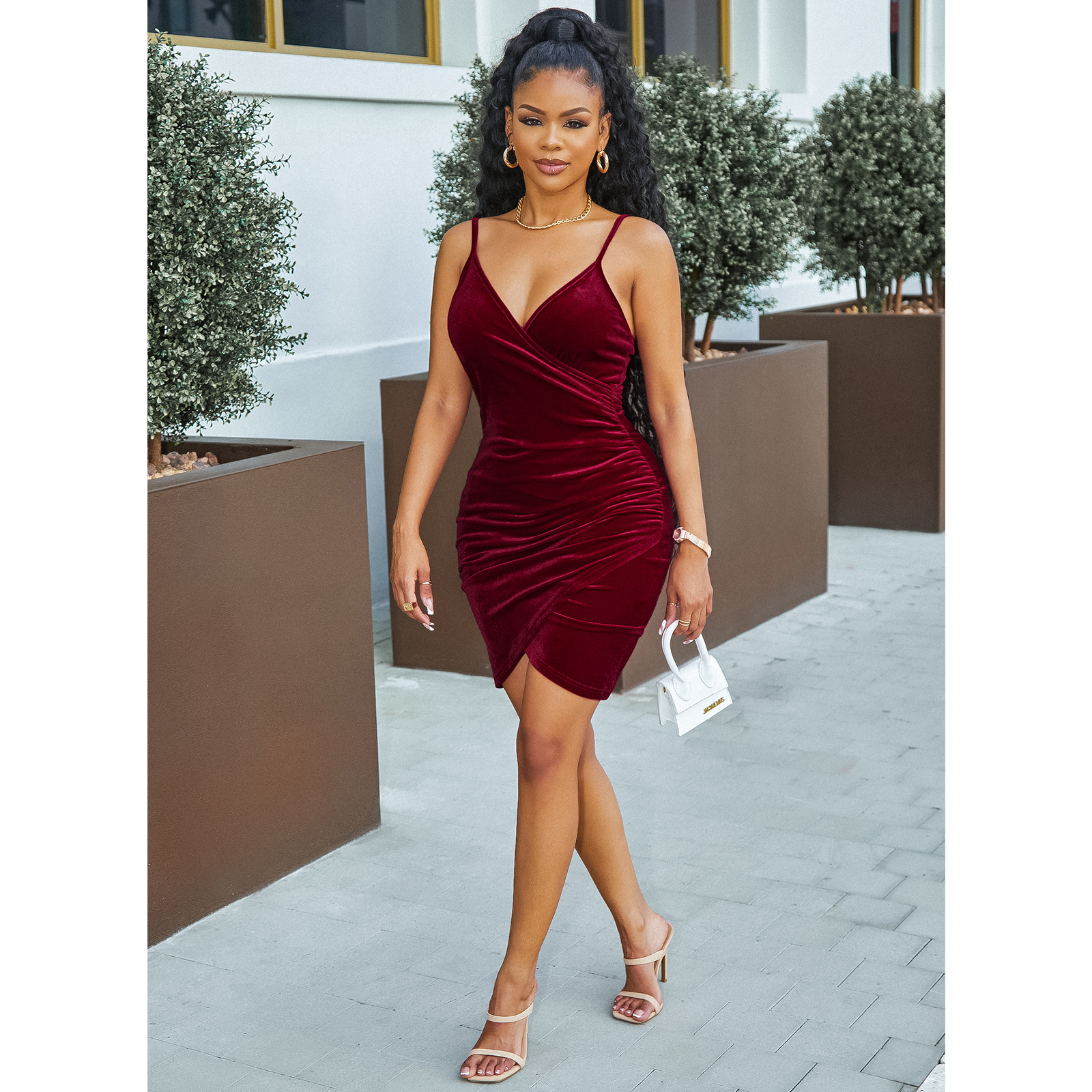 Brand Name: streetallyfabric name: velvetMain component content of fabric: 71%-80%pattern: plainstyle: sexySleeve: SleevelessWaist type: mid-waistCollar: V-neckskirt length: mid skirtSkirt type: hip skirt