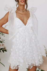 - Product Name: Sweet Solid Frenulum V Neck Mini Dresses