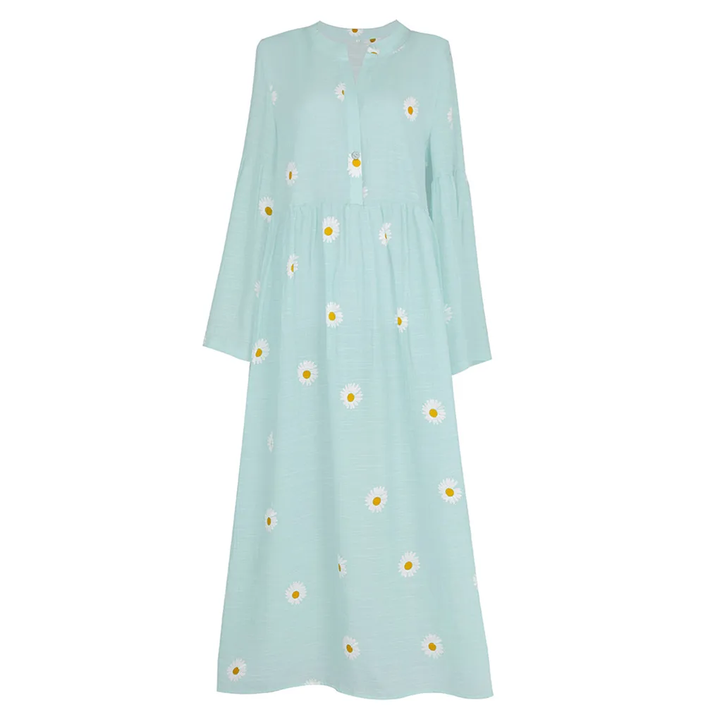 - Product Name: Women Dress Ladies Summer Fashion Casual Daisy Floral Print Long Sleeves Cotton V-Neck Loose Maxi Dress Plus Size