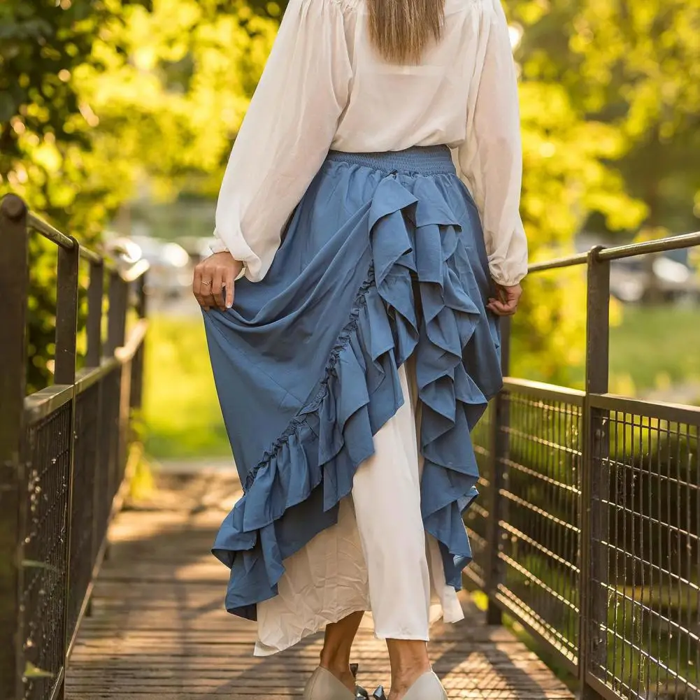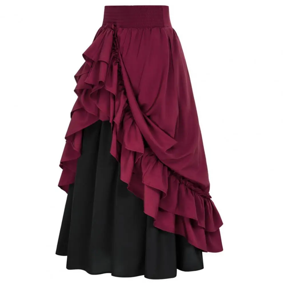 - Product Name: Women Retro Medieval Elastic Lace High Waist Boho Maxi Skirt Casual Drawstring A Line Shirtdresses Backless Vintage Bodycon