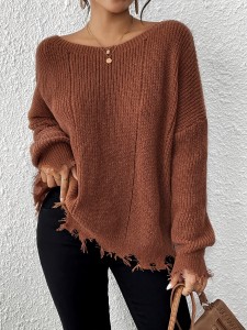 - Product Name: Women'S Elegant Solid Color Crew Neck Knit Sweater