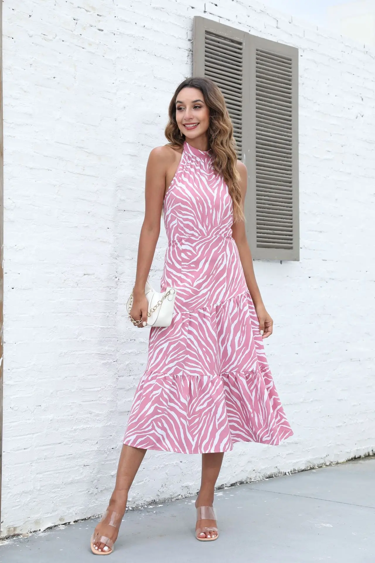 Women Sexy Backless Sling Neck Halter Casual Dress