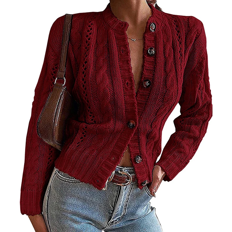 - Product Name: Women Sexy V Neck Buttons Cardigan Coats Winter Casual Hollow Out Solid Sweater Fashion Autumn Long Sleeves Slim Sweater