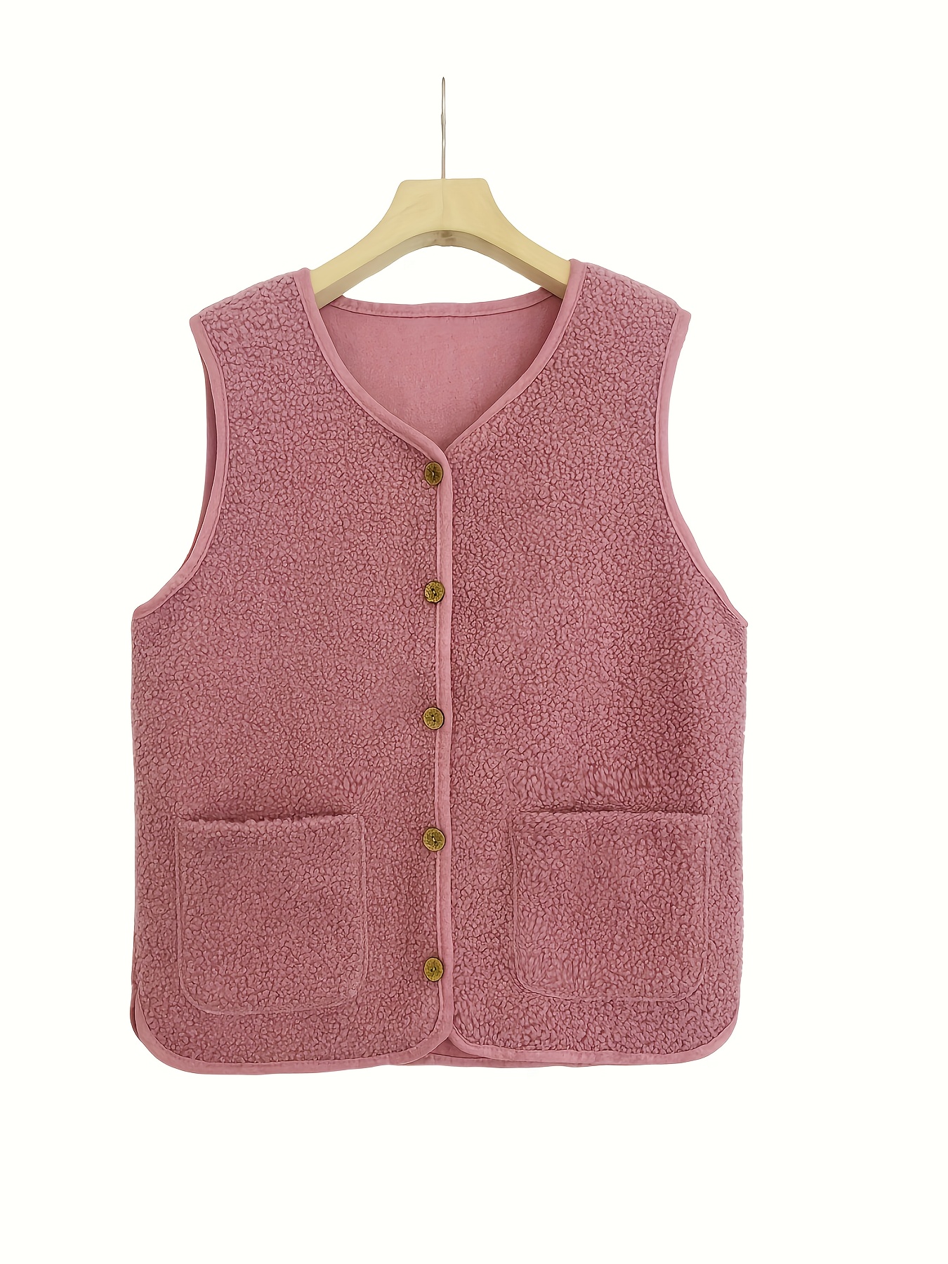 Button Front Teddy Vest, Casual Short Sleeve So...US$ 28.79 US$ 31.99 -