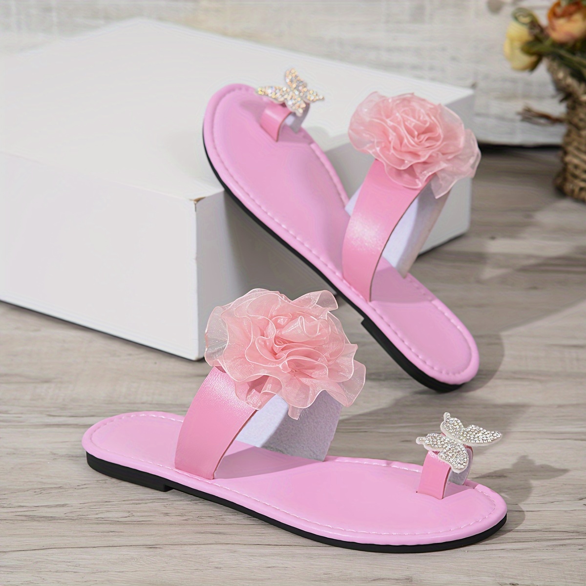 - Product Name: Women's Elegant Rhinestone & Floral Flat Sandals - Slip-On Backstrap Comfortable Casual Shoes with Round Toe, Synthetic Cover & Rubber Sole for All-Season Beach Vacations, Butterfly Embellished Sandals | Durable Comfort Footwear