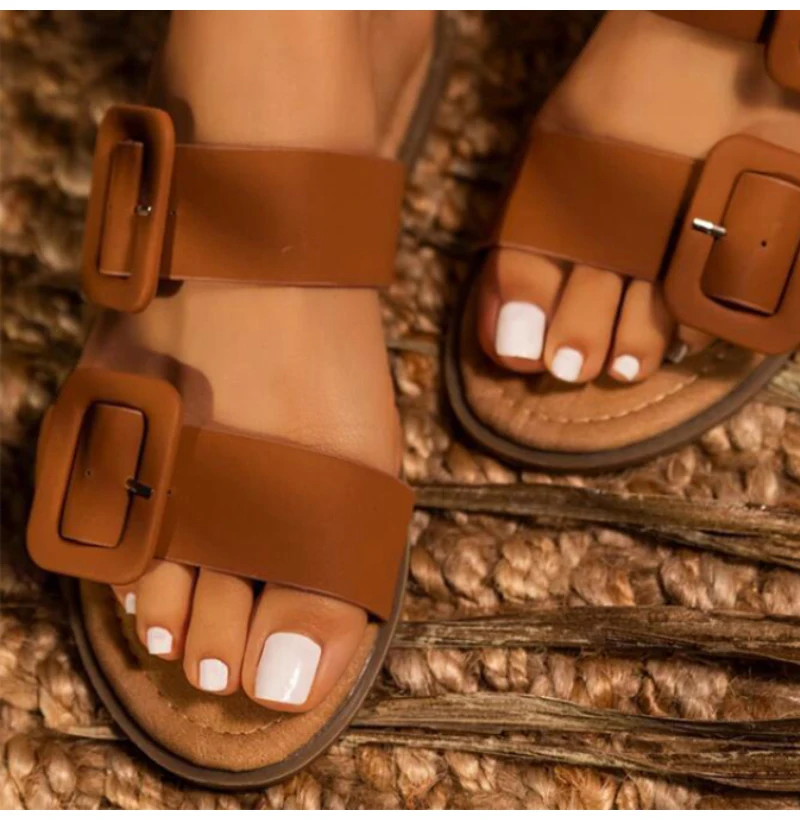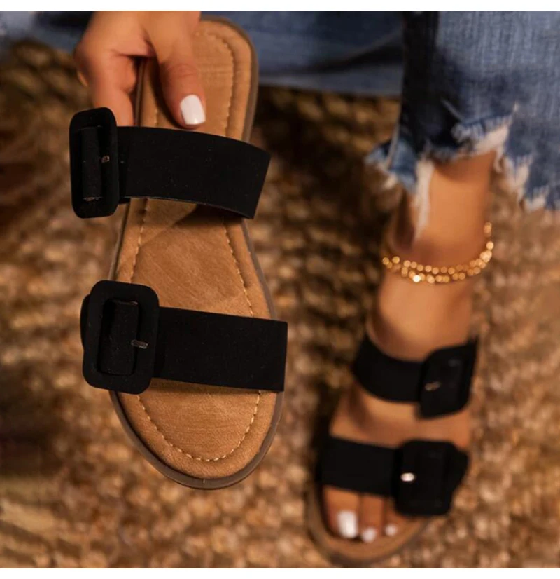 Women's Fashion Flat Square Casual Open Toe Beach Shoes Fashion Slippers