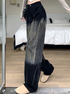 - Product Name: Women's High Waist Gradient Ombre Jeans, Spring Fashion, Casual Loose Fit Wide Leg Floor-Length Pants