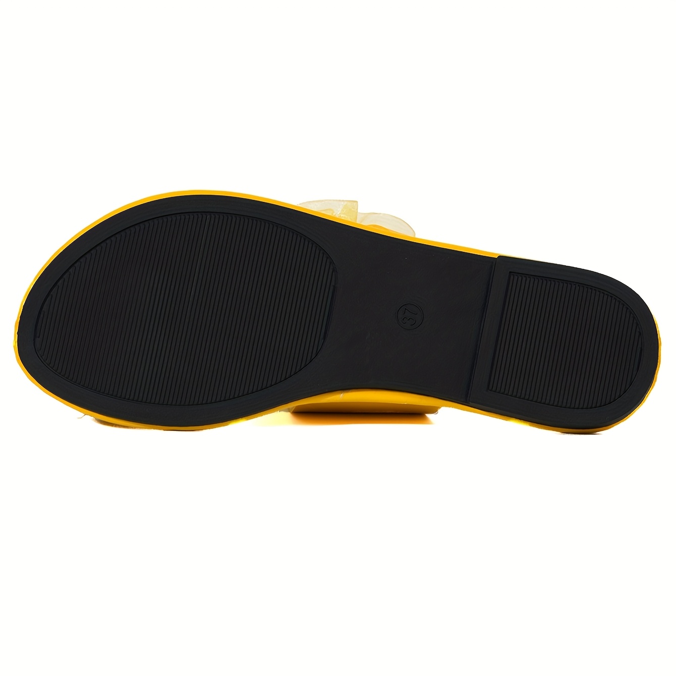 Women's Stylish Yellow Slide Sandals with Floral Accents - Breathable, Slip-On Summer Flats for Casual Wear and Vacation, Ladies Sandals